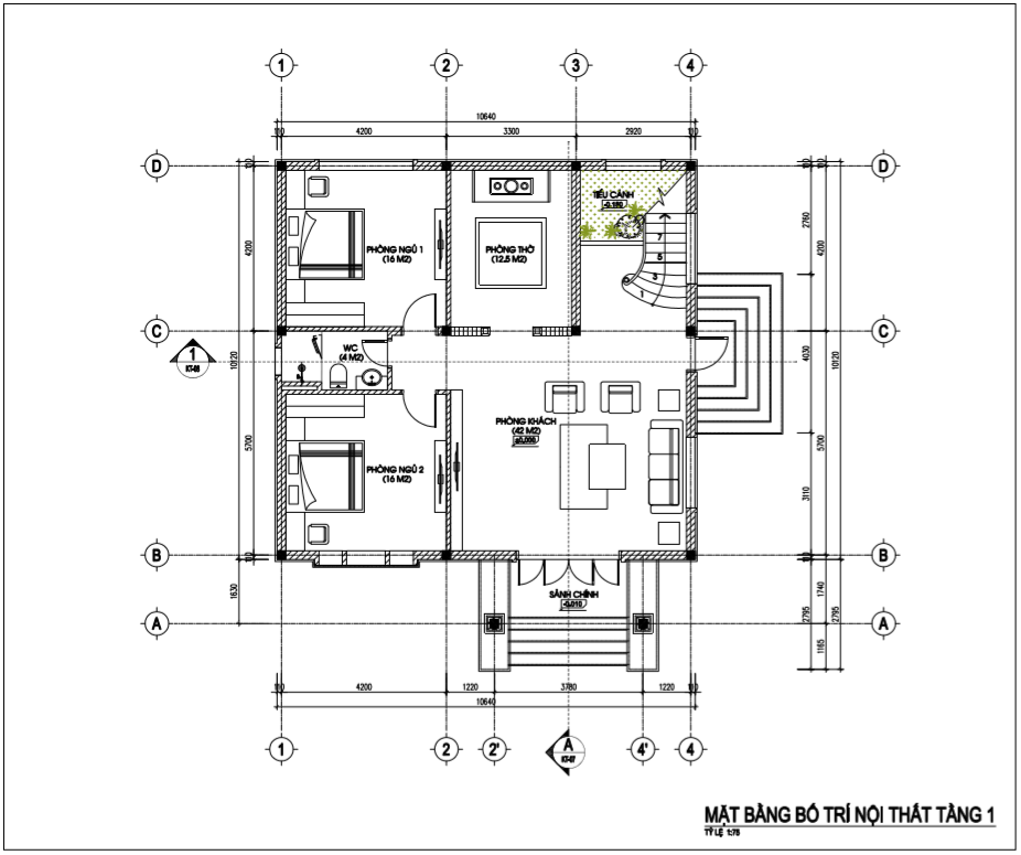 - Công năng dự kiến thi công là 5 phòng ngủ, 1 phòng khách, 1 phòng thờ.