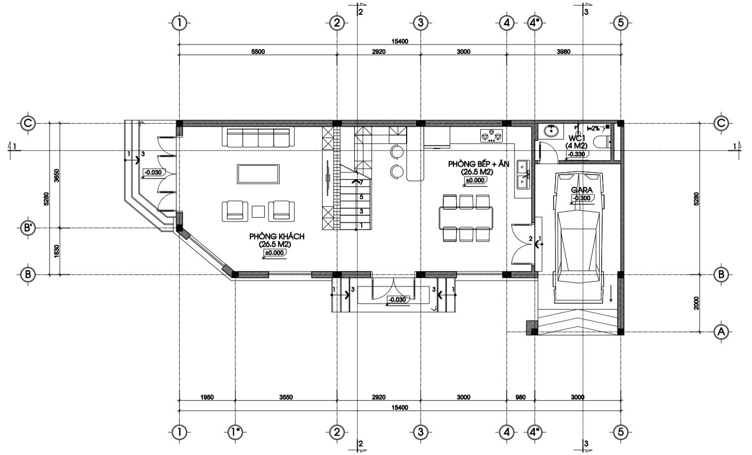 - Công năng dự kiến thi công là 5 phòng ngủ, 1 phòng thờ, 1 phòng khách, phòng bếp, 1 phòng SHC.