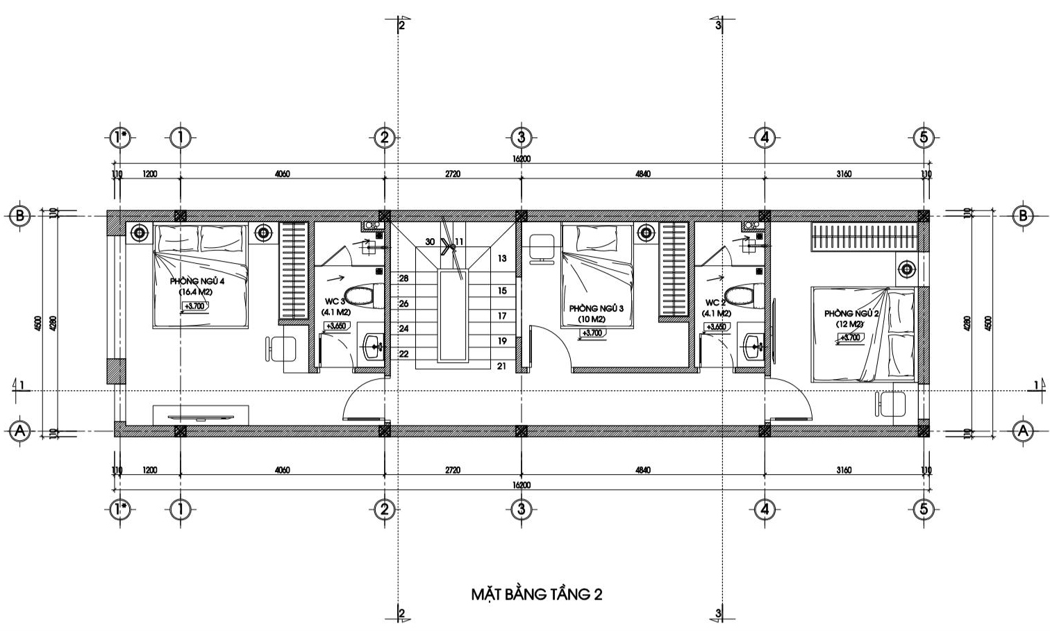 Mặt bằng tầng 2 nhà phố 4,5x15m