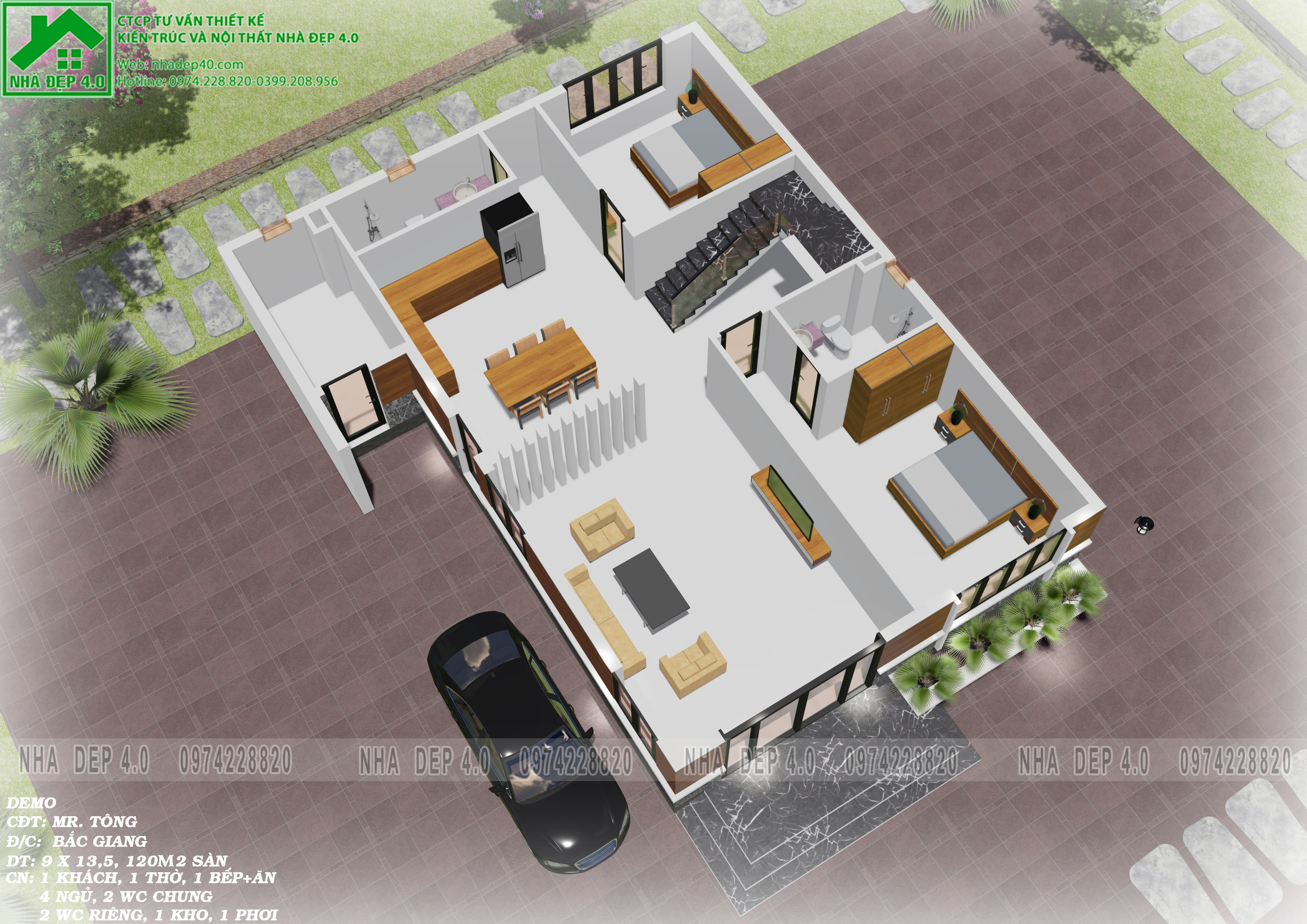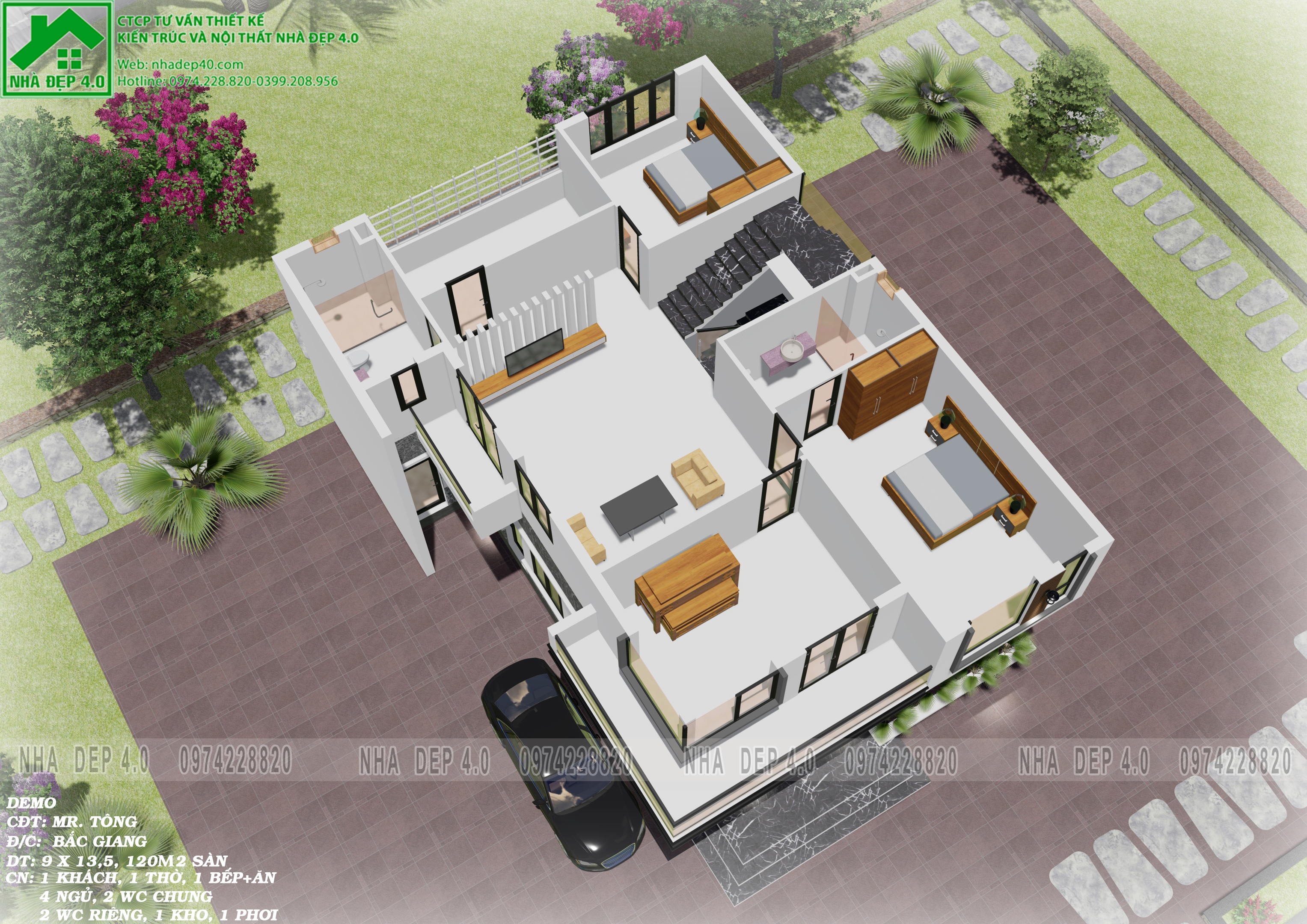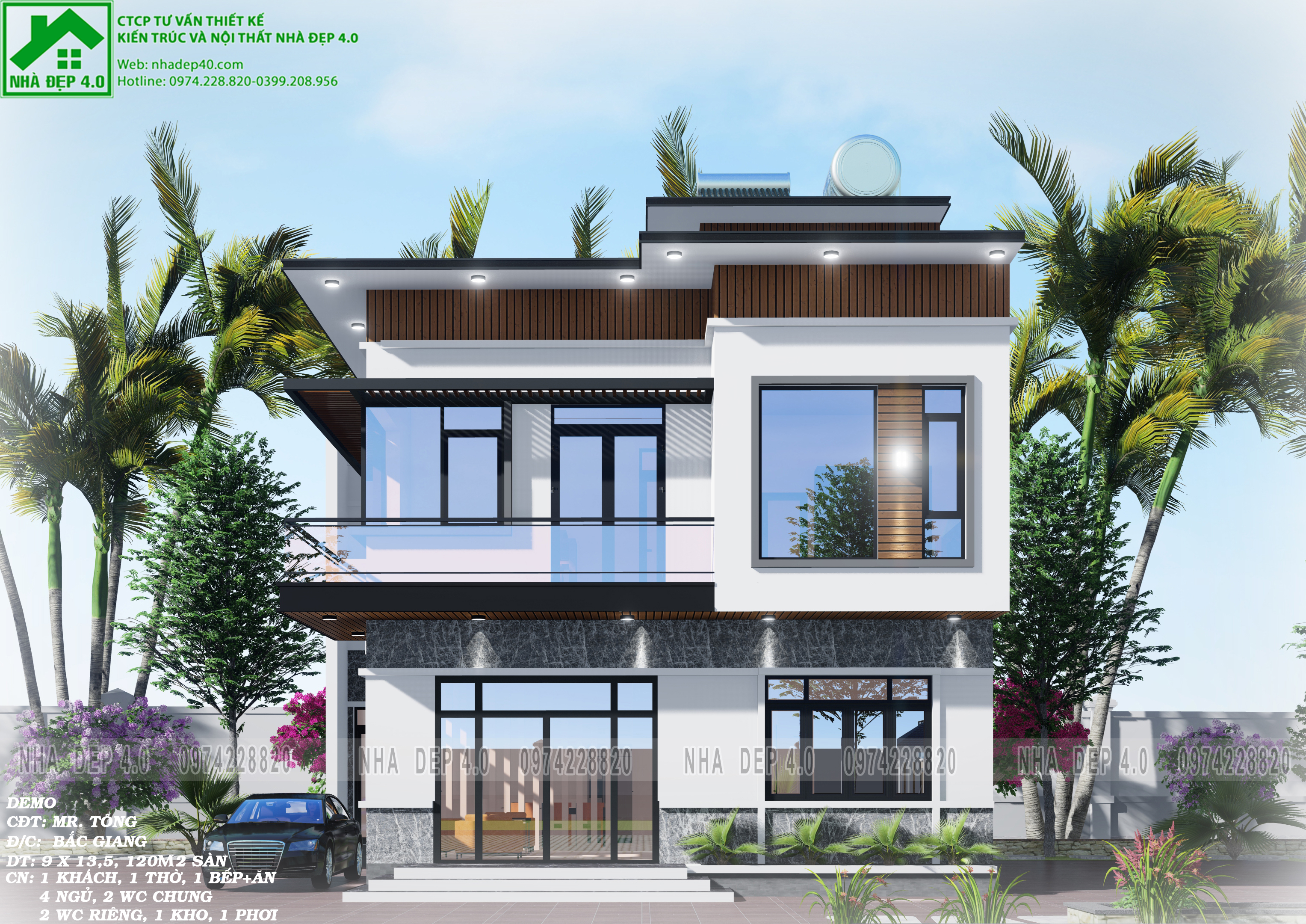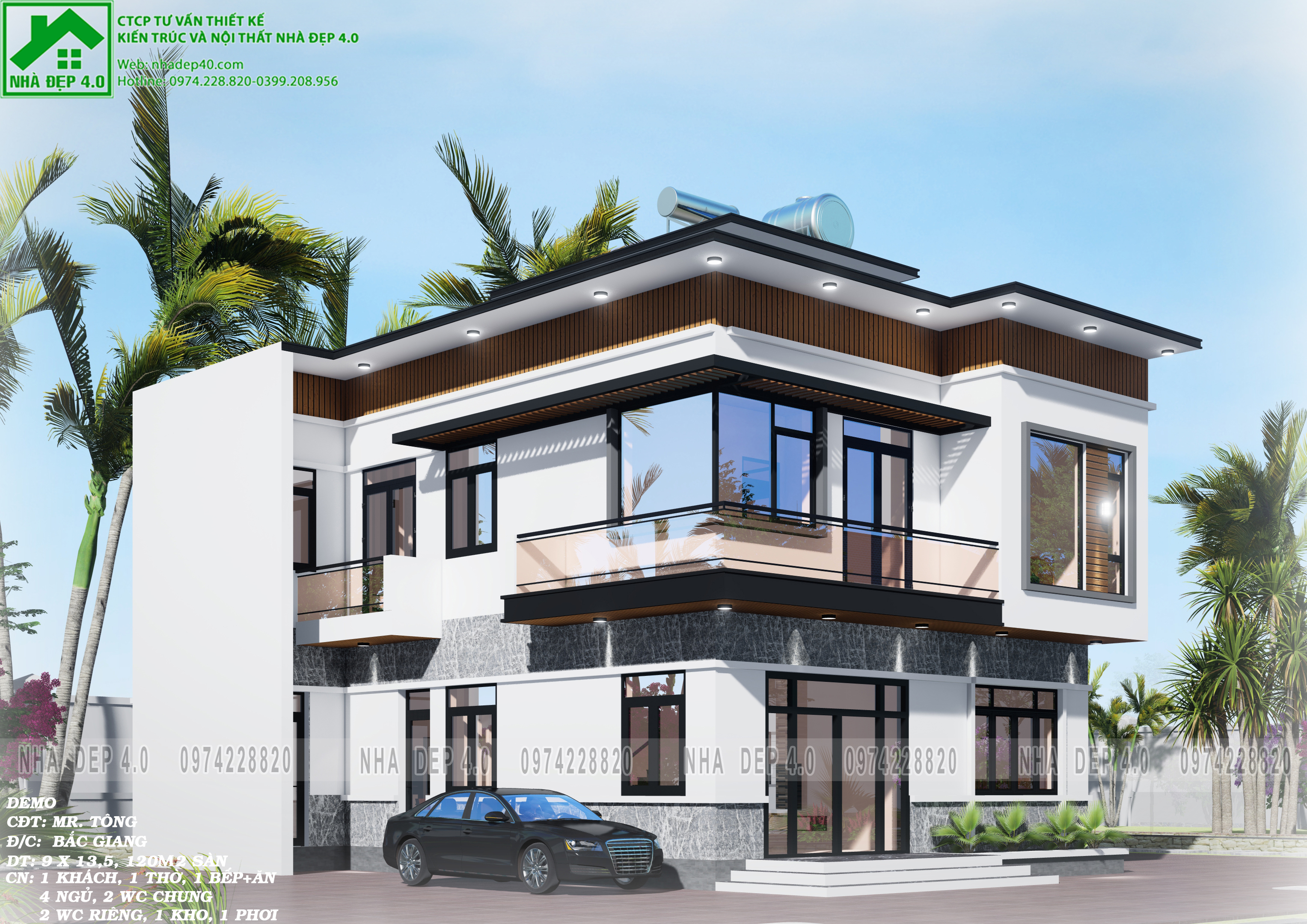 Mẫu biệt thự 2 tầng hiện đại với phối cảnh kiến trúc ấn tượng và có nhiều sáng tạo, được kiến trúc sư của Nhà Đẹp 4.0 triển khai thiết kế cho gia đình anh Tông tại Bắc Giang. Hy vọng mẫu thiết kế nhà của chúng tôi sẽ giúp các bạn có thêm những ý tưởng thiết kế cho mái ấm tương lai của gia đình mình.