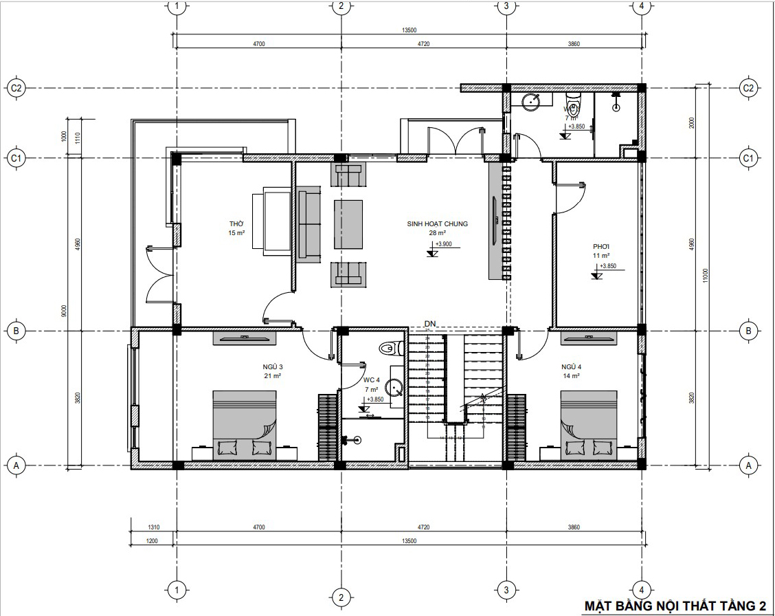 - Công năng dự kiến thi công là 4 phòng ngủ, 1 phòng khách, 1 phòng thờ, 1 phòng bếp, 1 phòng shc.