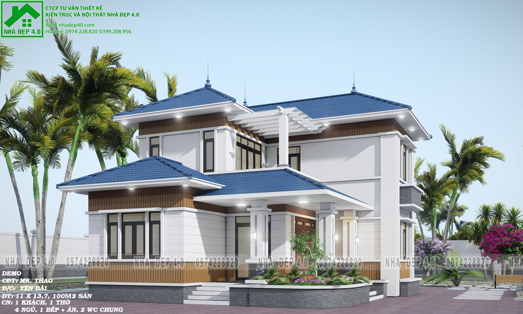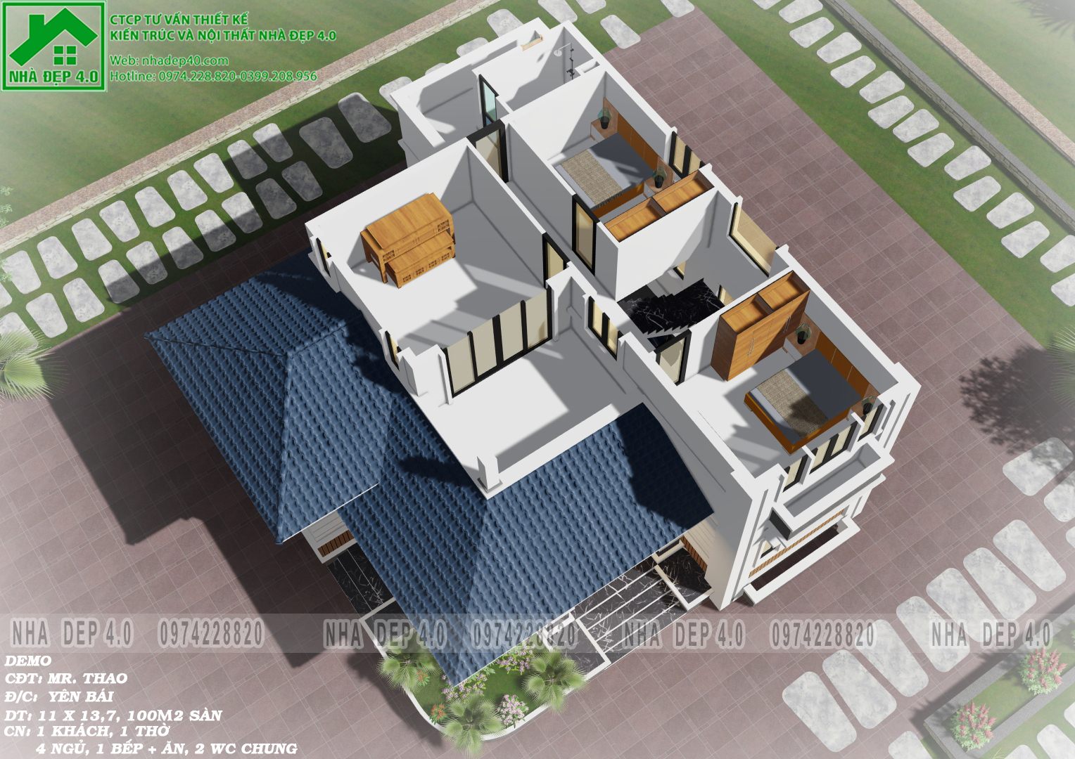 Với yêu cầu tư vấn thiết kế được nhận ở trên, đội ngũ KTS Nhà Đẹp 4.0 đã nhanh chóng lên phương án thiết kế mặt bằng công năng và phối cảnh 3D cho ngôi nhà 2 tầng với bộ hồ sơ chi tiết gồm đầy đủ 4 phần: kiến trúc, kết cấu, điện nước và dự toán khiến gia chủ vô cùng hài lòng, ưng ý ngay từ lần trao đổi đầu tiên.