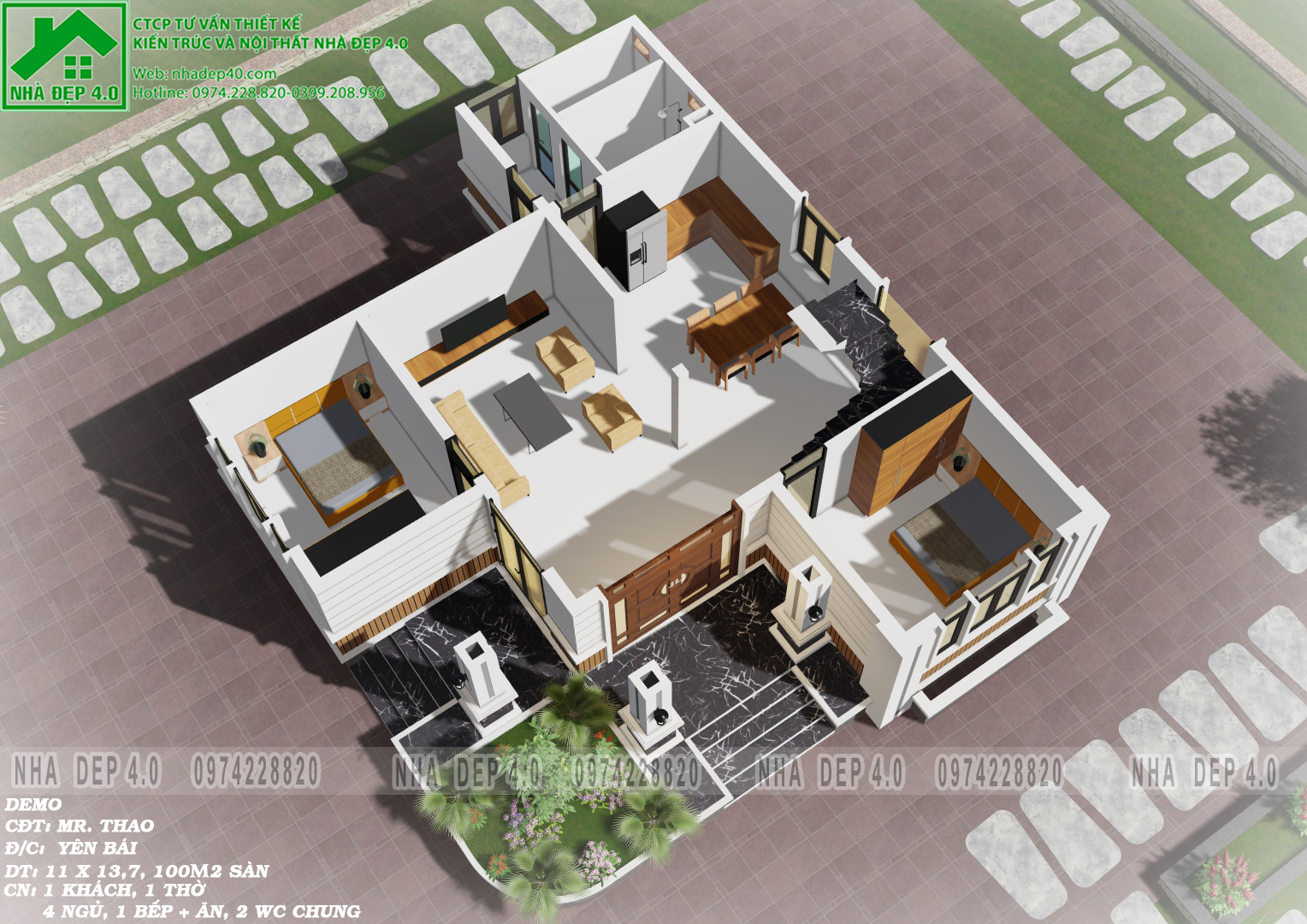 - Công năng: 4 phòng ngủ, 1 phòng khách, 1 phòng thờ, 1 phòng bếp.