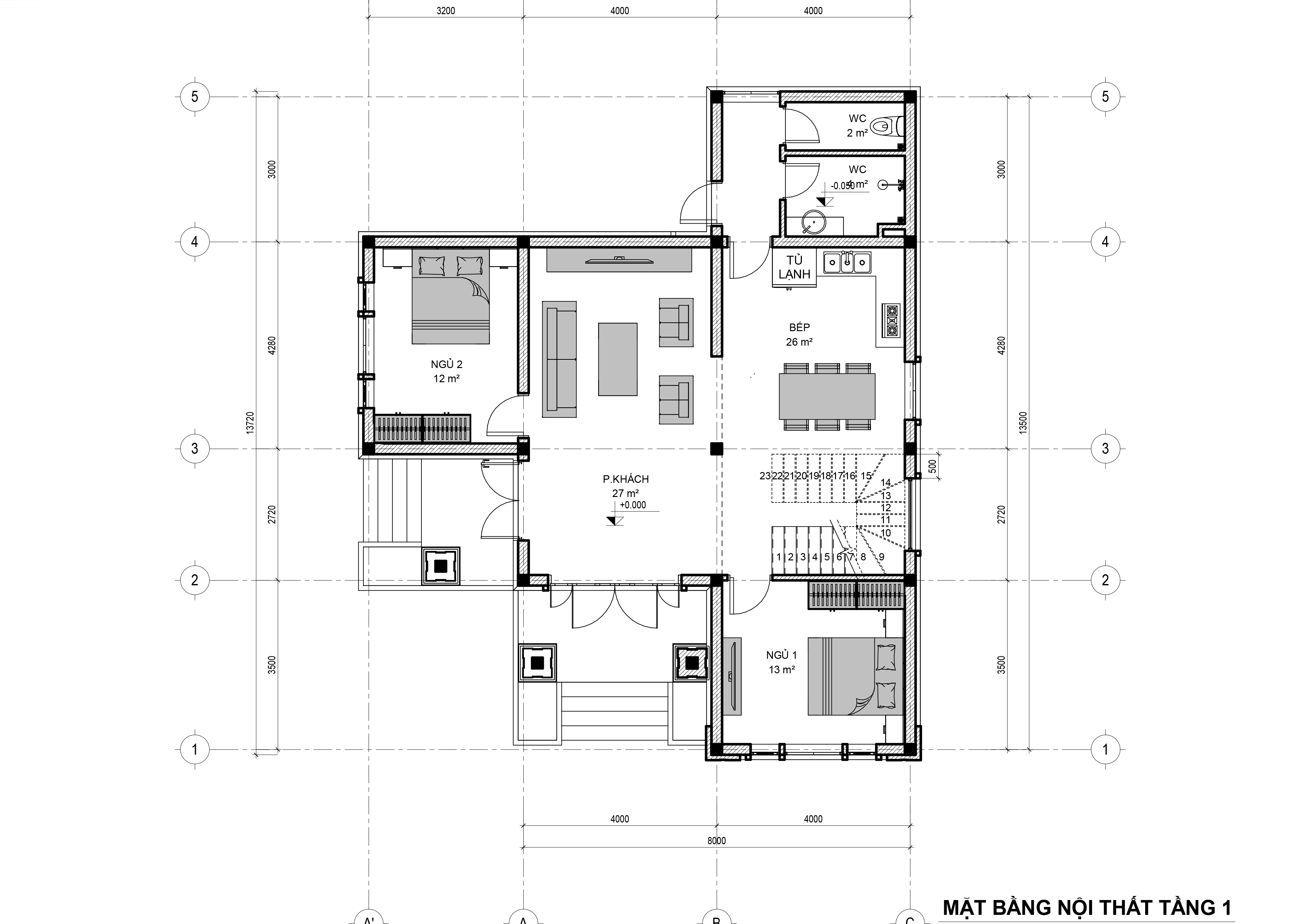 - Diện tích thiết kế: 11,2m x 13,5m
