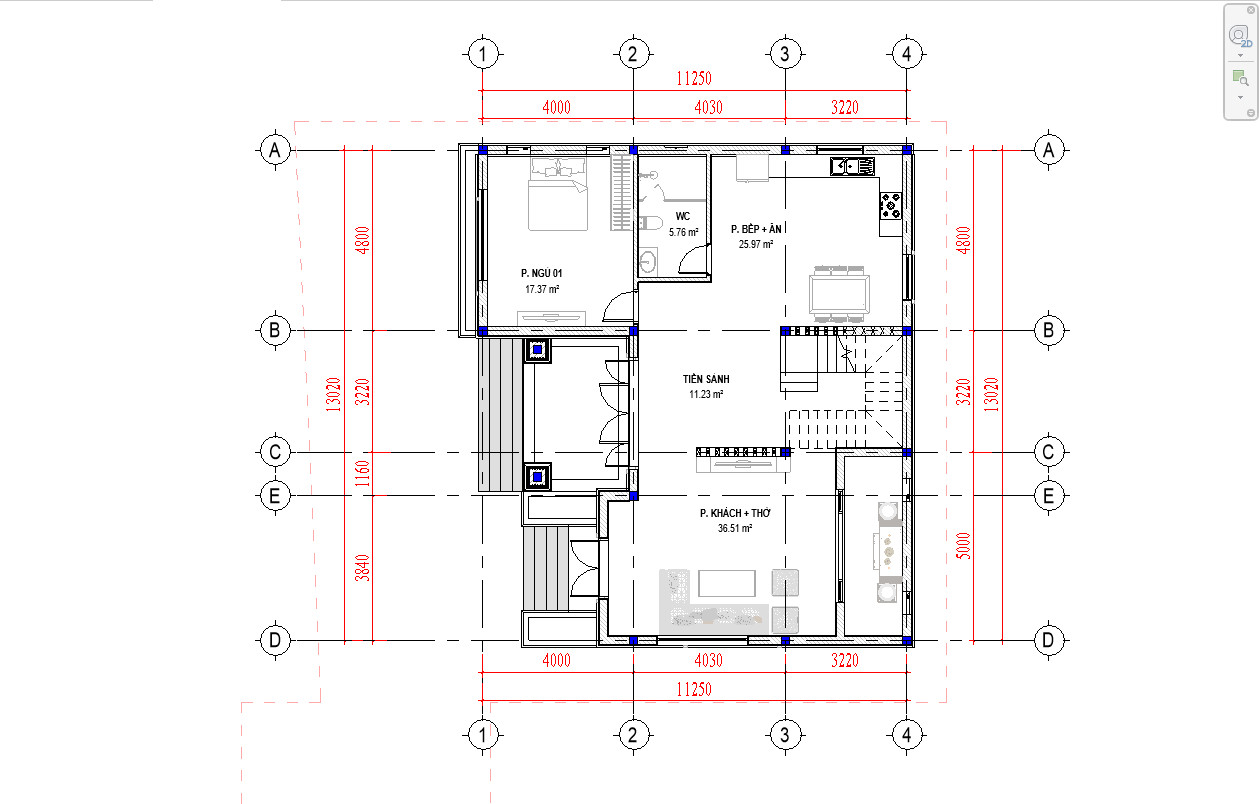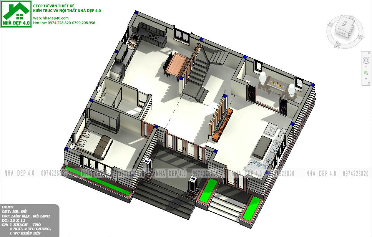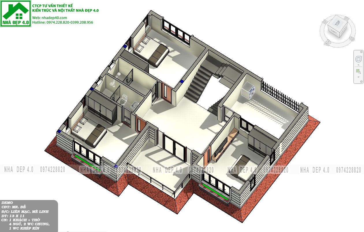 - Công năng dự kiến thi công là 4 phòng ngủ, 1 phòng khách, 1 phòng thờ, 1 Bếp ăn