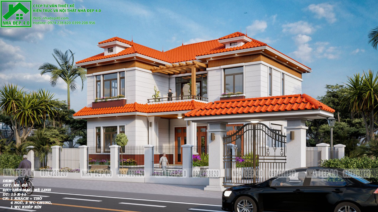 Mẫu biệt thự 2 tầng hiện đại mái Nhật diện tích 11,3m x 13,2m