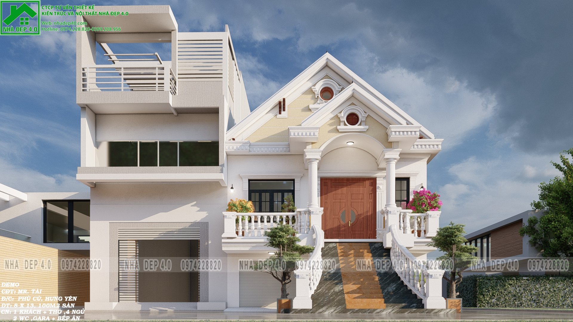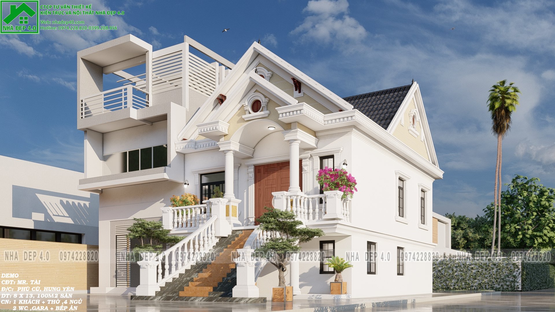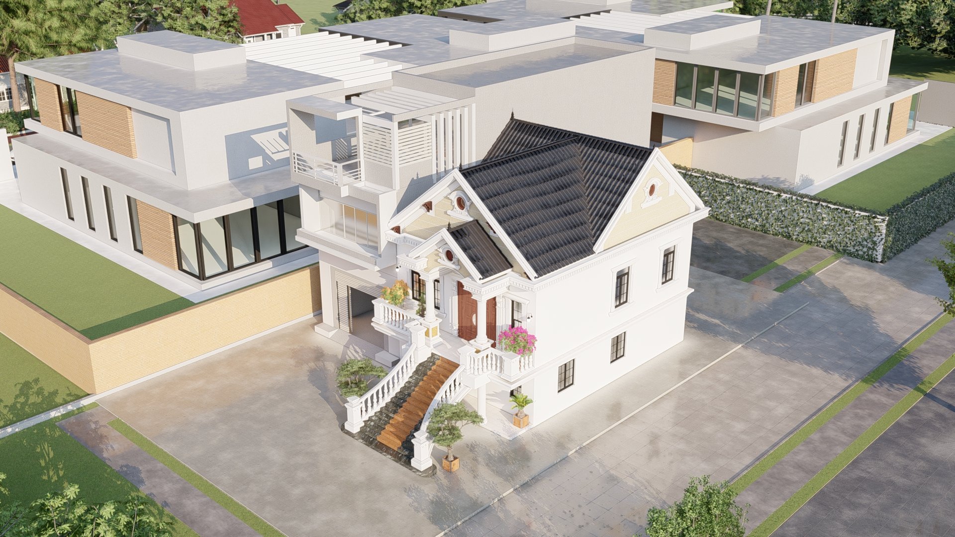 Phối cảnh mẫu thiết kế biệt thự 2 tầng mái thái bán tân cổ điển
