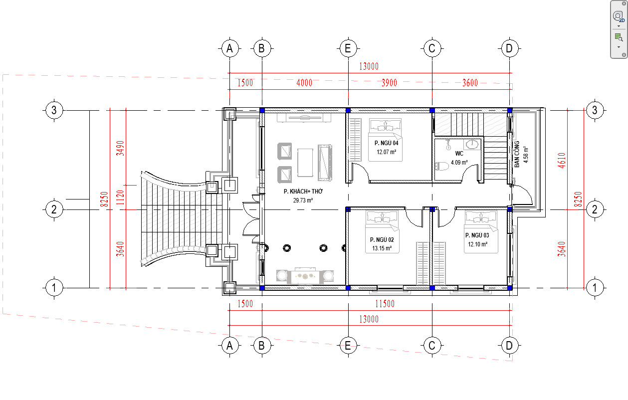 - Công năng dự kiến thi công là 4 phòng ngủ, 1 phòng khách, 1 phòng thờ, 1 phòng bếp, 1 gara
