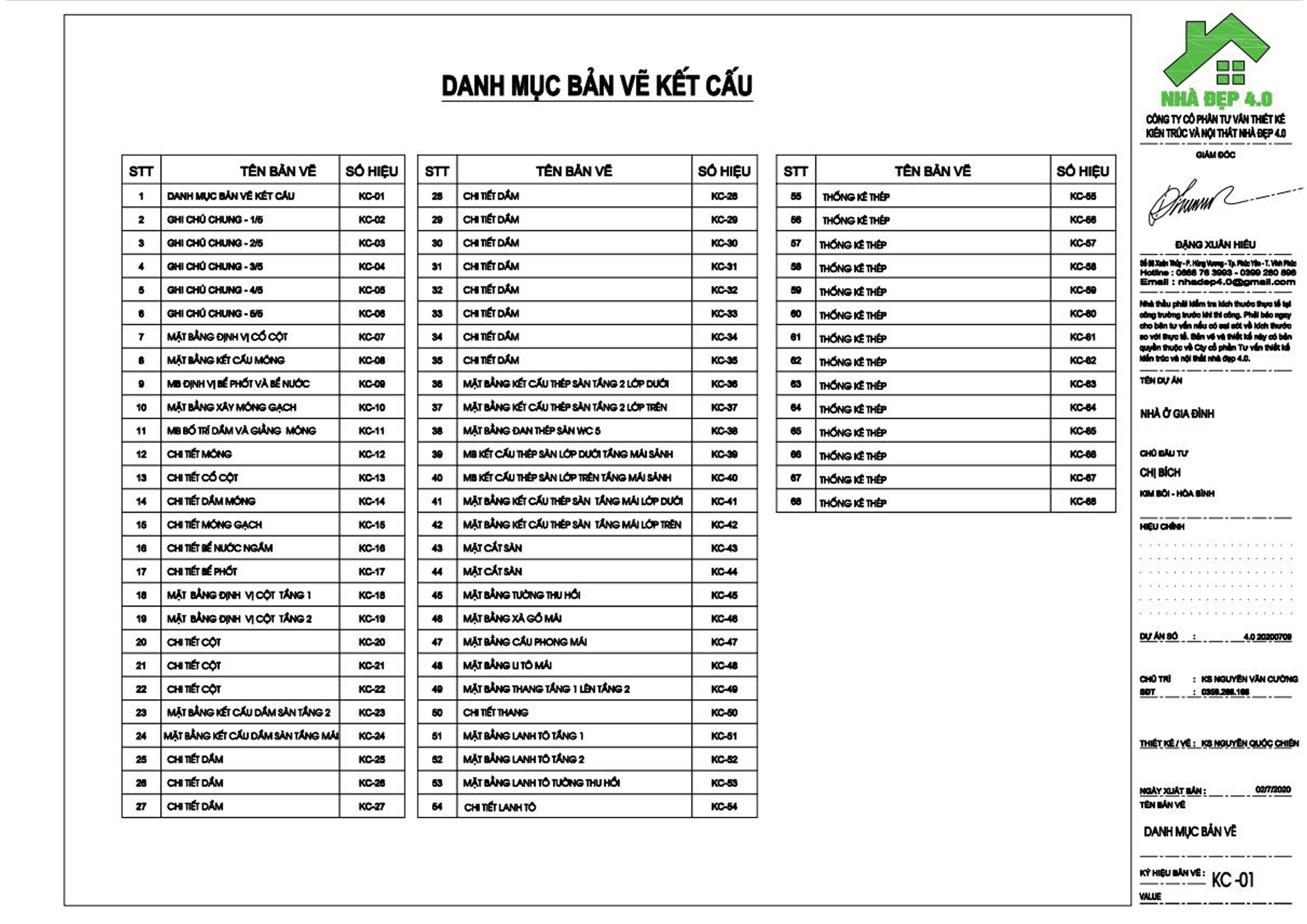 - Hồ sơ mặt bằng, móng, dầm, sàn, bể phốt, bể nước, cột, thép