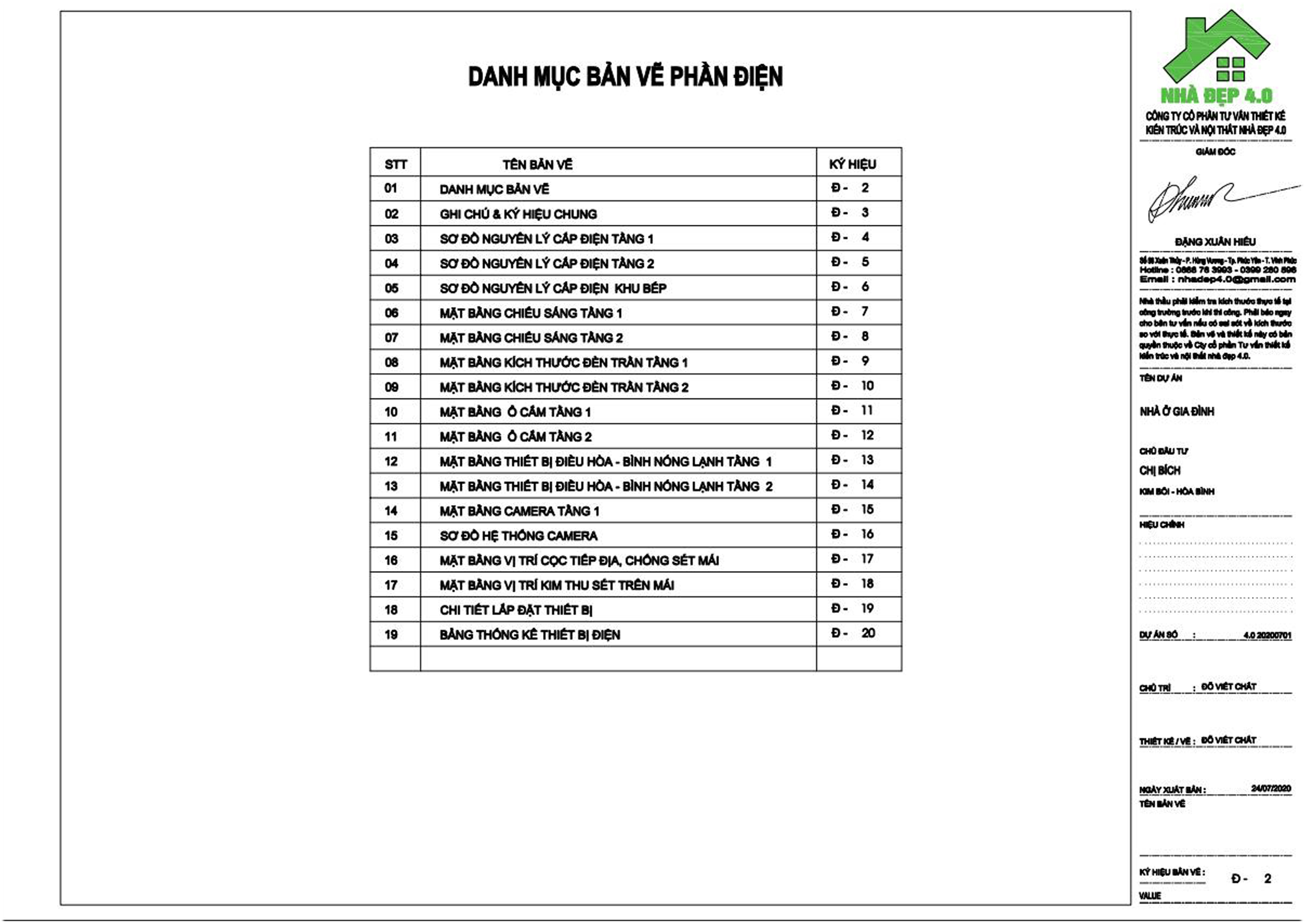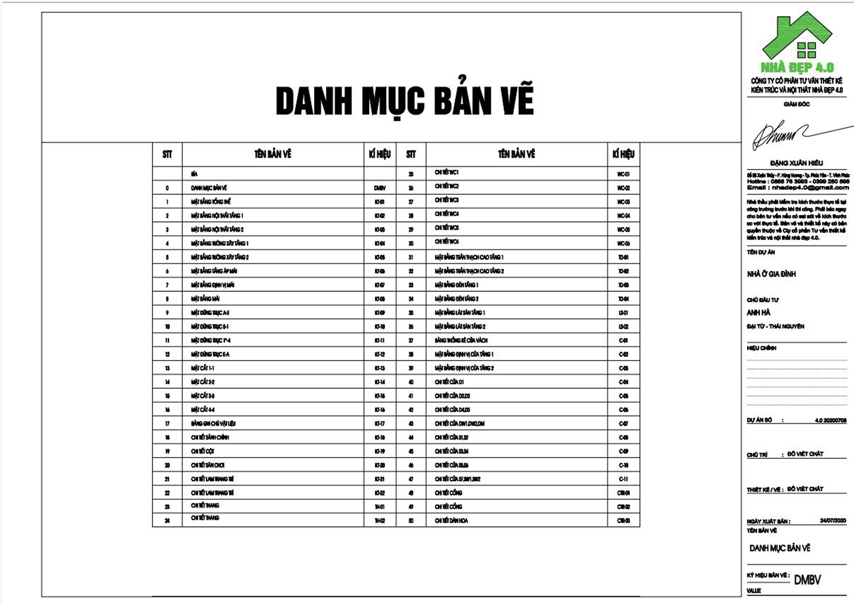 Tại Nhà Đẹp 4.0, hồ sơ thiết kế luôn được tính toán theo phong thủy, tuổi của chủ đầu tư. Sử dụng dịch vụ thiết kế kiến trúc nhà ở của Nhà Đẹp 4.0, khách hàng sẽ nhận đầy đủ hồ sơ thiết kế với các bản vẽ như: