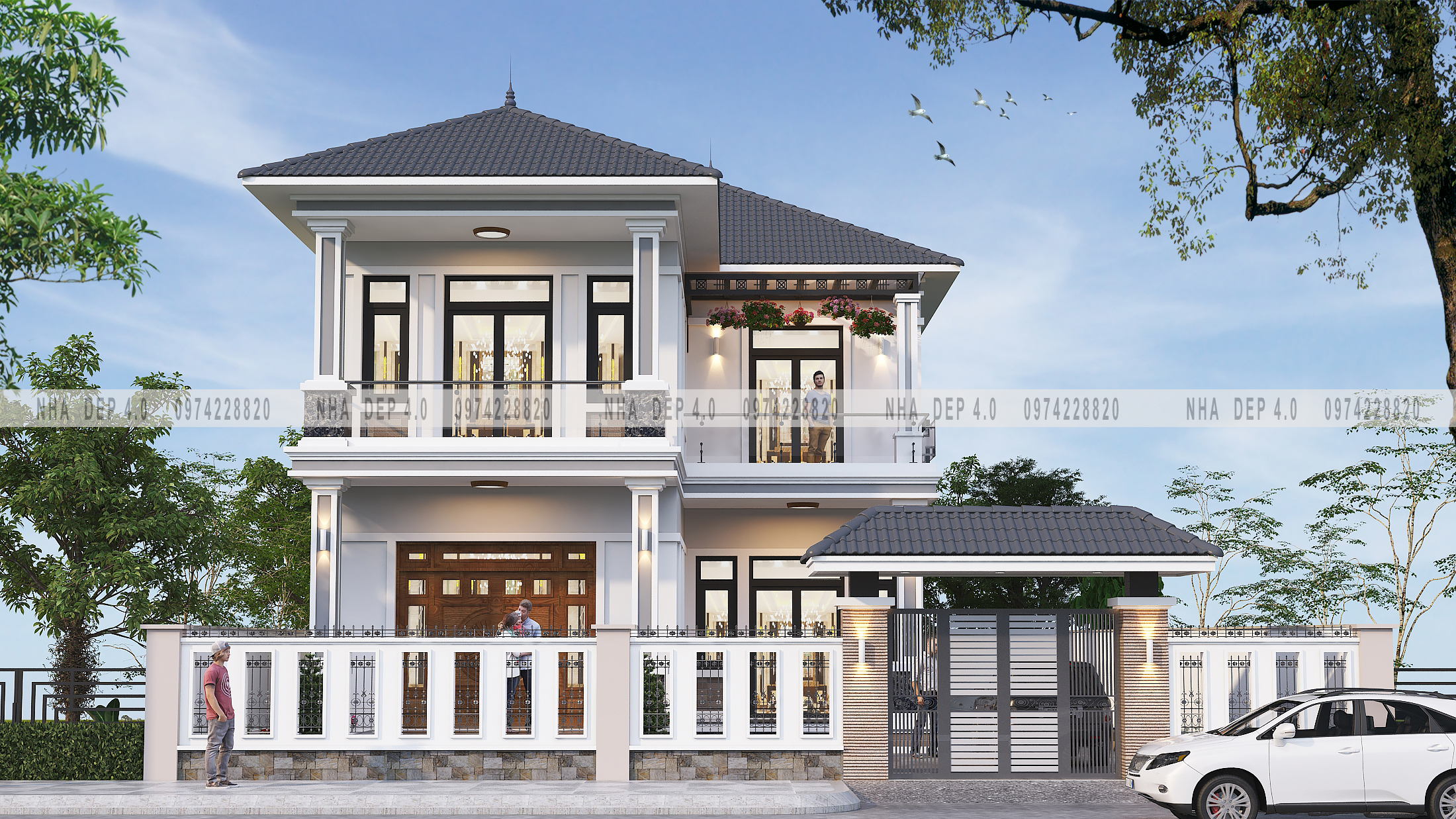 Mẫu biệt thự 2 tầng hiện đại với phối cảnh kiến trúc ấn tượng và có nhiều sáng tạo, được kiến trúc sư của Nhà Đẹp 4.0 triển khai thiết kế cho gia đình bác Bảy tại Phú Thọ. Hy vọng mẫu thiết kế nhà của chúng tôi sẽ giúp các bạn có thêm những ý tưởng thiết kế biệt thự nhà vườn mới mẻ và khoa học hơn nhé.