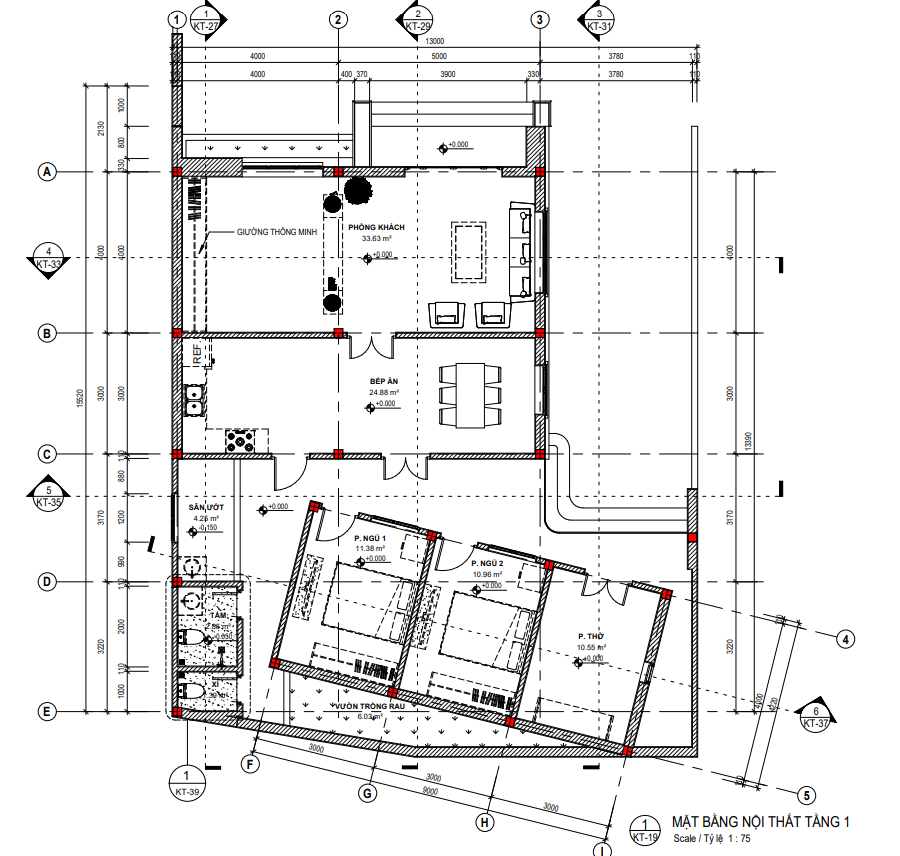 - Diện tích thiết kế: 13m x 15,5m