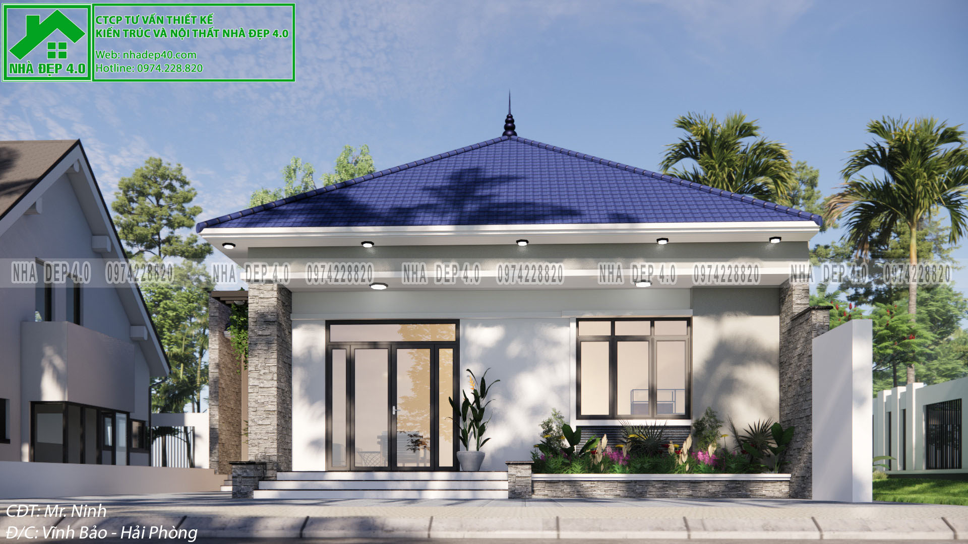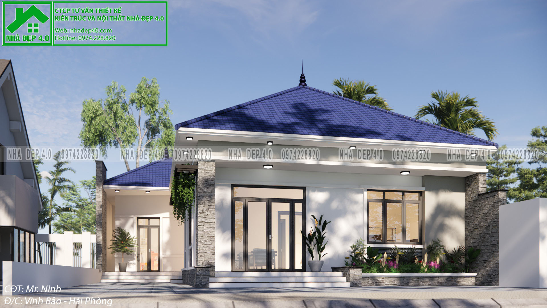 Và chúng ta vừa được chiêm ngưỡng mẫu biệt thự 1 tầng diện tích 13x15,5m của gia đình chú Ninh tại Hải Phòng. Hy vọng sẽ là gợi ý phù hợp cho các bạn khi đang muốn xây dựng ngôi nhà phong cách và kích thước tương tự. Mọi ý kiến đóng góp quý vị có thể để lại dưới phần bình luận, hoặc đang cần tư vấn về thiết kế thi công, quý vị hãy liên hệ với hotline của Nhà Đẹp 4.0 để chúng tôi có thể hỗ trợ trực tiếp. Chúc các bạn thành công!