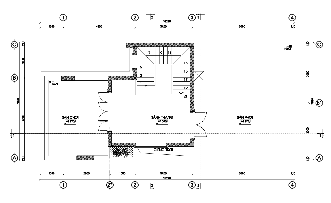 MẶT BẰNG CÔNG NĂNG NHÀ PHỐ DIỆN TÍCH 7M X 17,5M