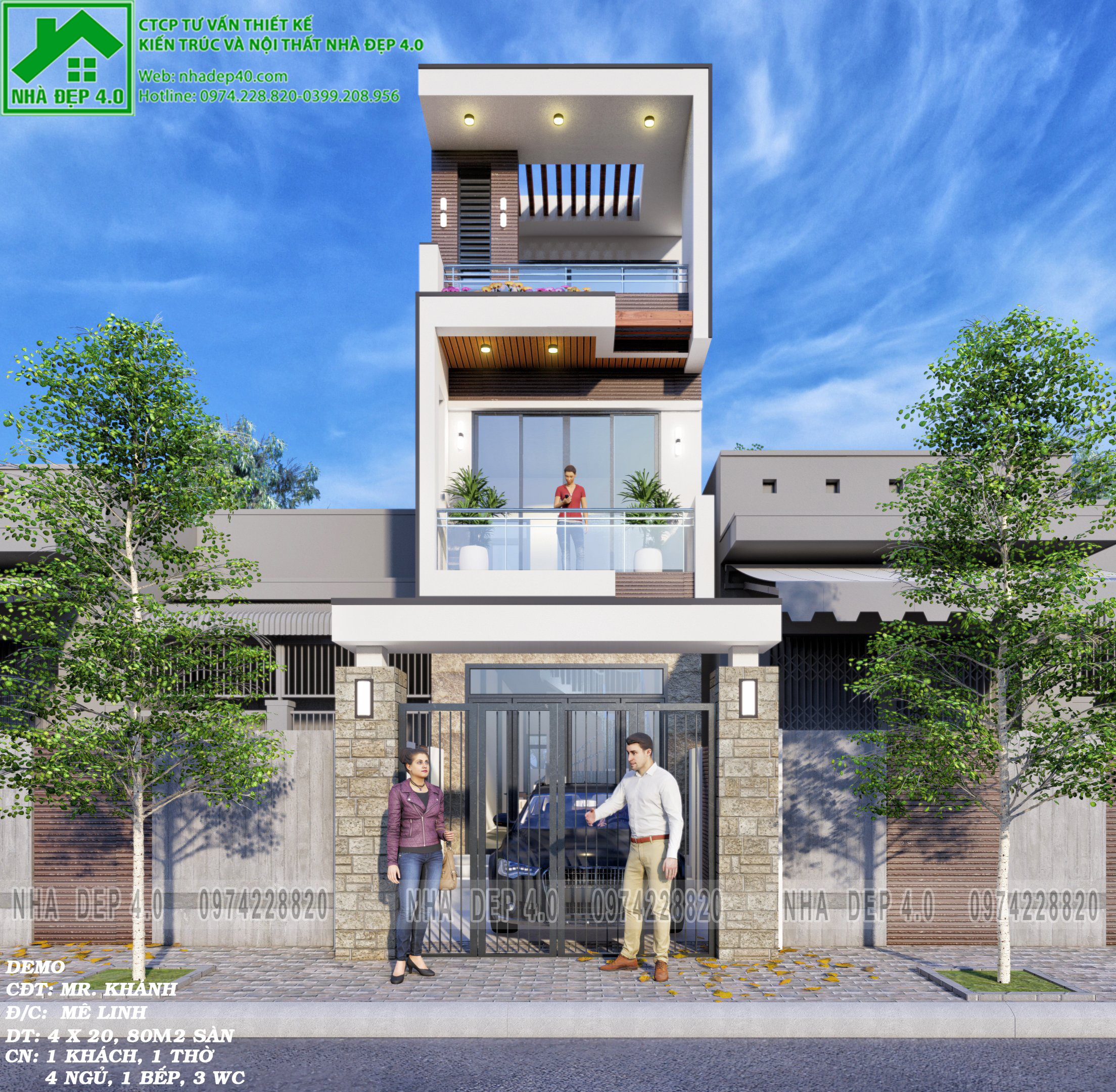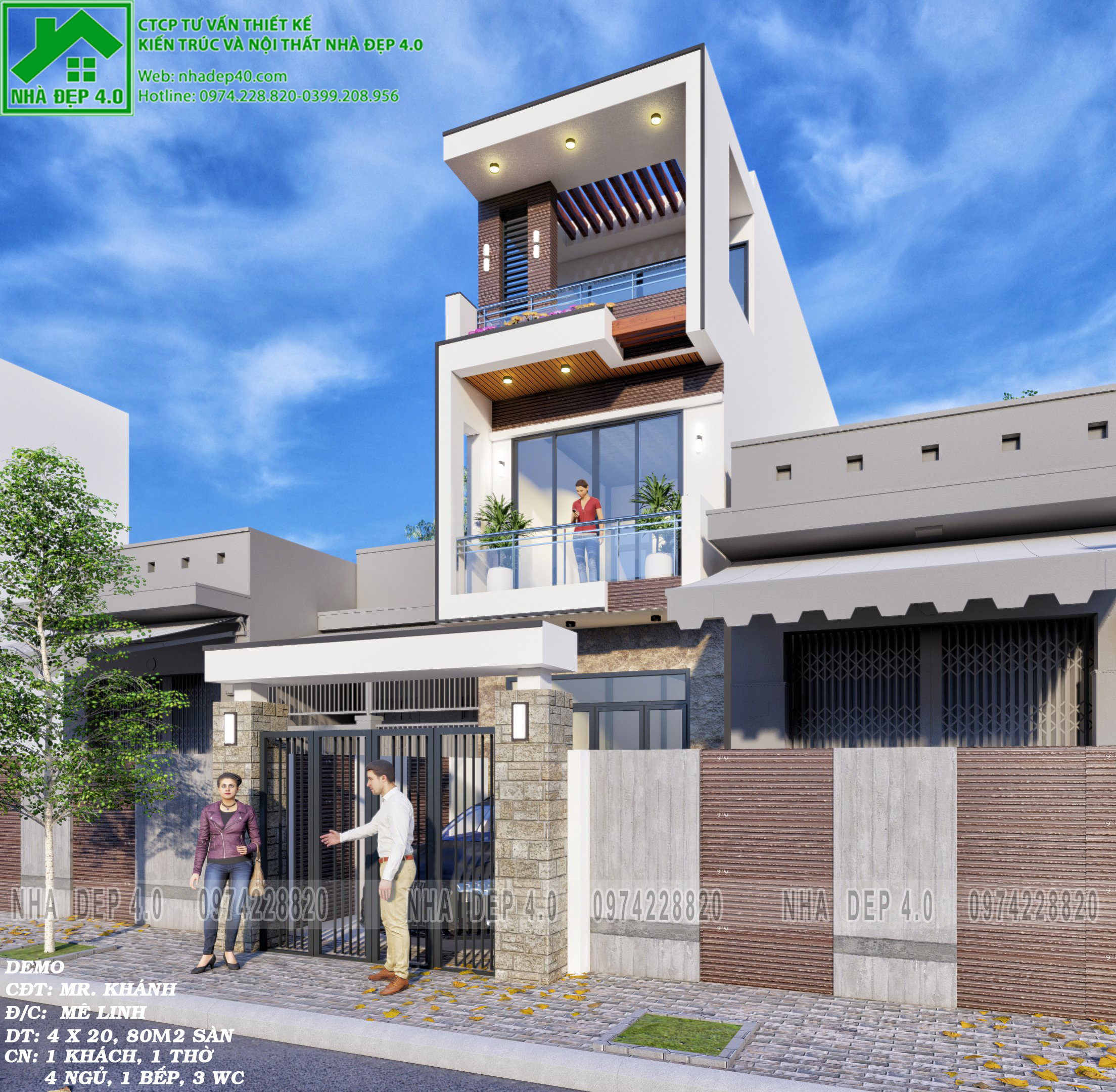 Nhà Đẹp 4.0 là đơn vị chuyên nghiệp về tư vấn thiết kế kiến trúc nhà ở theo ý tưởng riêng cho mỗi khách hàng. Chính vì vậy sau đây chúng tôi sẽ chia sẻ một mẫu nhà phố 3 tầng đẹp 2021 mà chúng đẫ thiết kế cho anh Khánh tại Mê Linh để các bạn tham khảo và nghĩ ý tưởng cho mẫu nhà 3 tầng của mình sao cho hài lòng nhất.