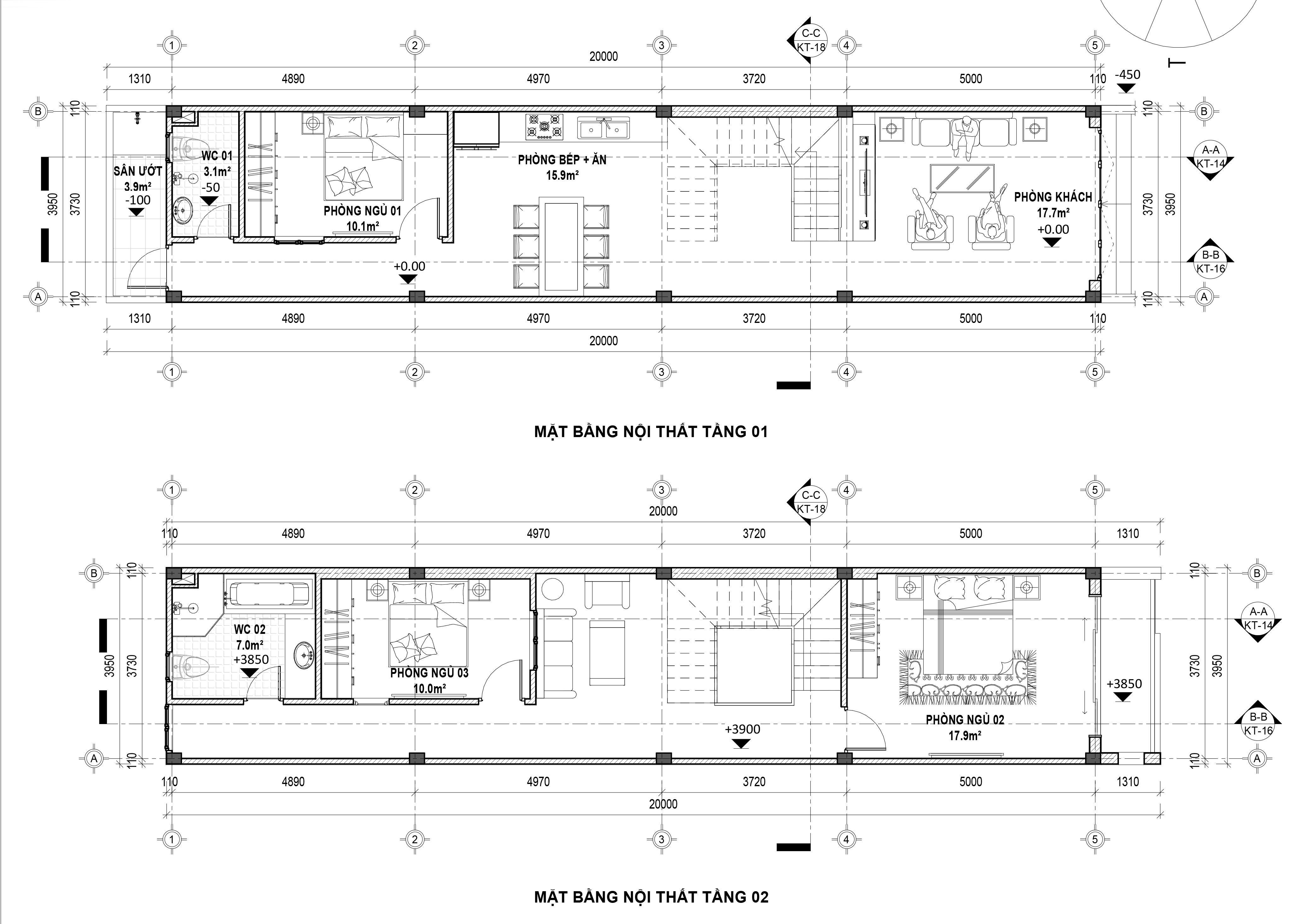 Mặt bằng nội thất tầng 1 + tầng 2
