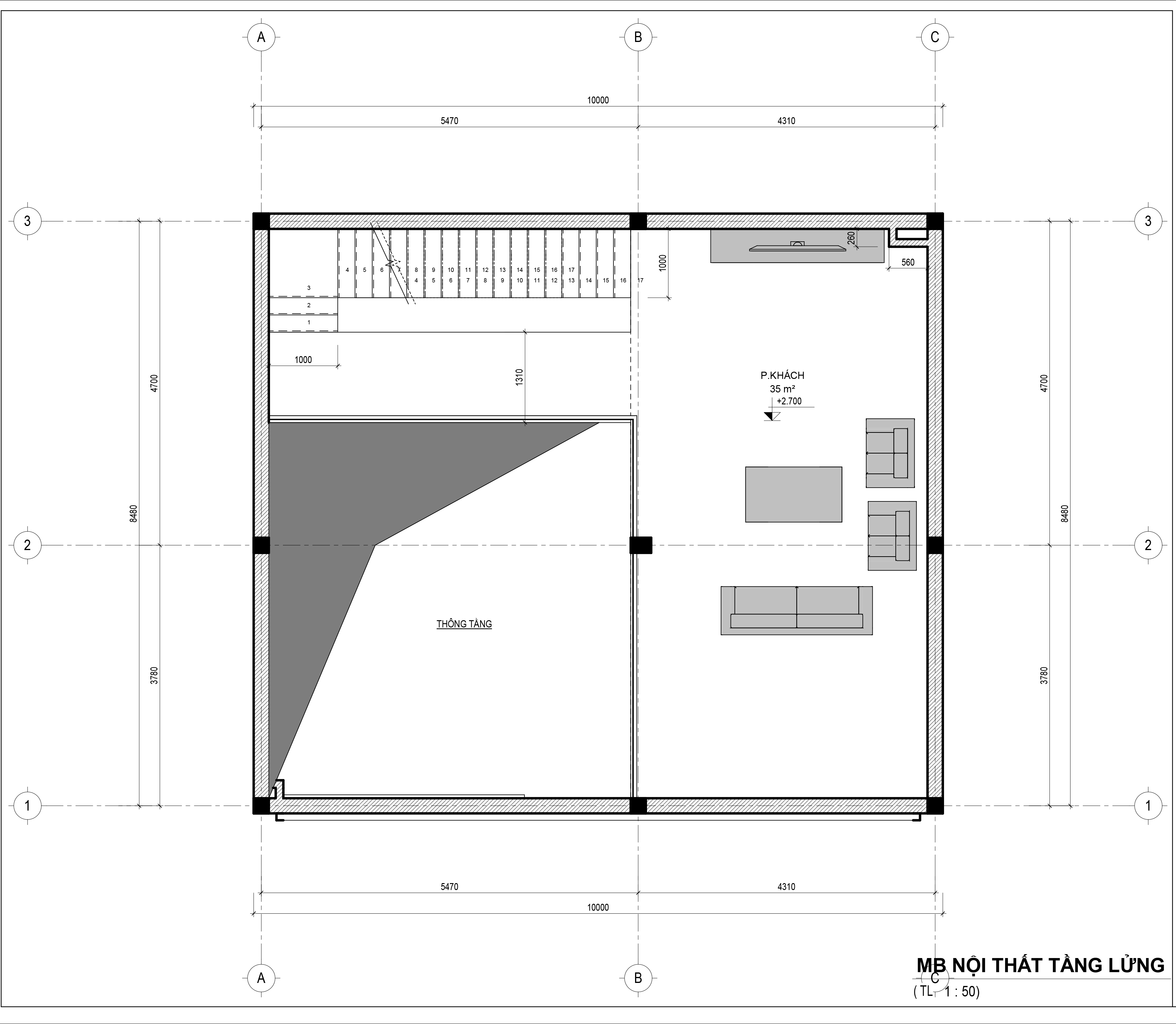 Mặt bằng tầng lửng nhà phố 8,5m x 9,7m