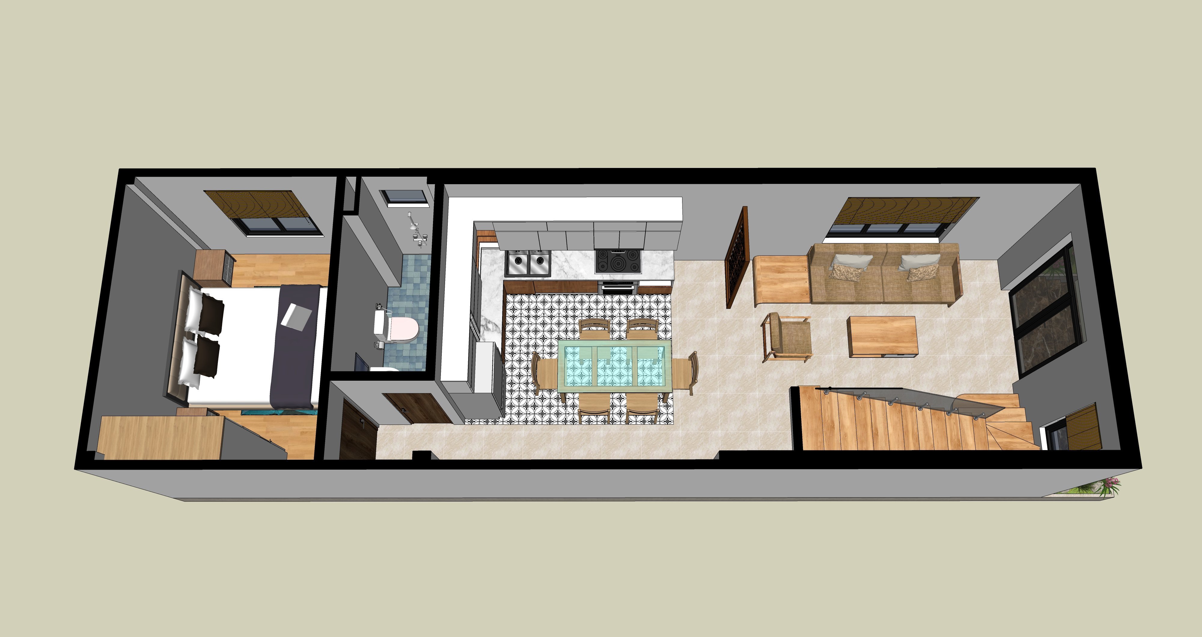 Với những công trình nhà ống còn mang trong mình nhược điểm về hình dạng. Sở hữu chiều sâu cùng phần mặt tiền không quá lớn, nếu như sự tính toán của KTS không thật sự kỹ lưỡng sẽ làm cho không gian vô cùng bí bách và ngột ngạt.