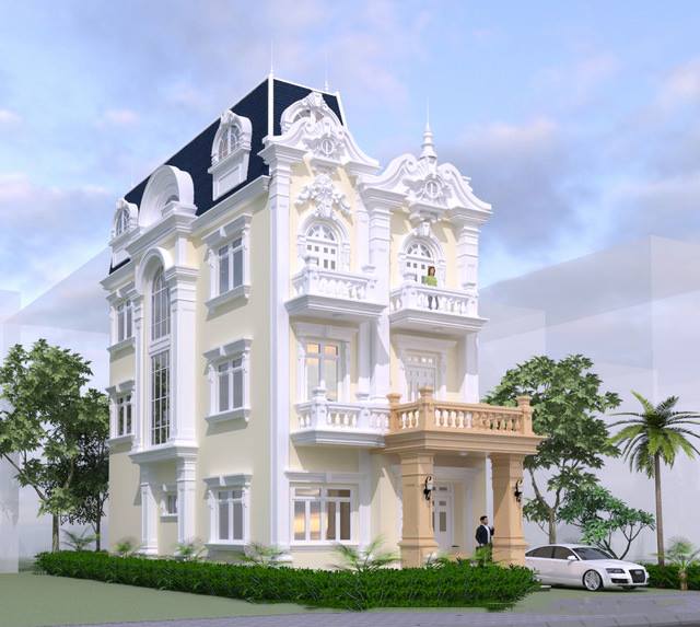 Với mặt tiền ô đất khá rộng và thoáng, cùng với mong muốn thi công mẫu nhà sang trọng, tinh tế và cuốn hút, gia đình đã tìm hiểu rất nhiều mẫu thiết kế. Tuy nhiên sau quá trình tìm hiểu, anh chị quyết định dừng lại ở mẫu thiết kế biệt thự Tân cổ điển, với phối cảnh sang trọng, hình khối vững chắc và kiên cố.Thiết kế biệt thự 3 tầng phải đảm bảo không gian sống tinh tế và sang trọng, kiến trúc bề thế của mẫu biệt thự cùng với phong cách tân cổ điển sang trọng, giúp cho công trình thêm cuốn hút và hấp dẫn hơn.