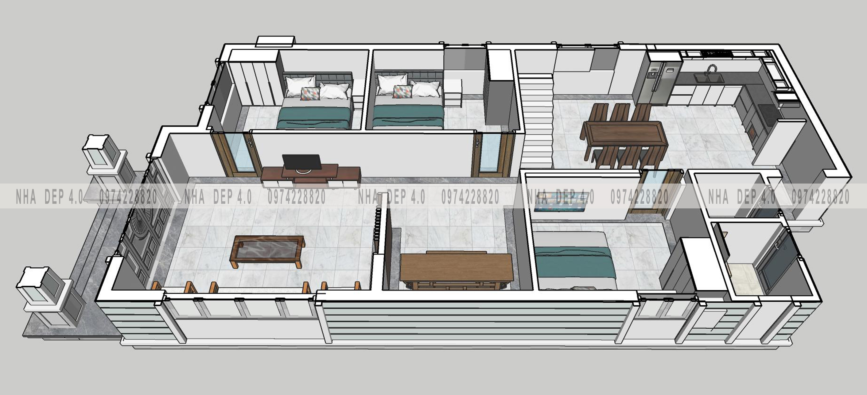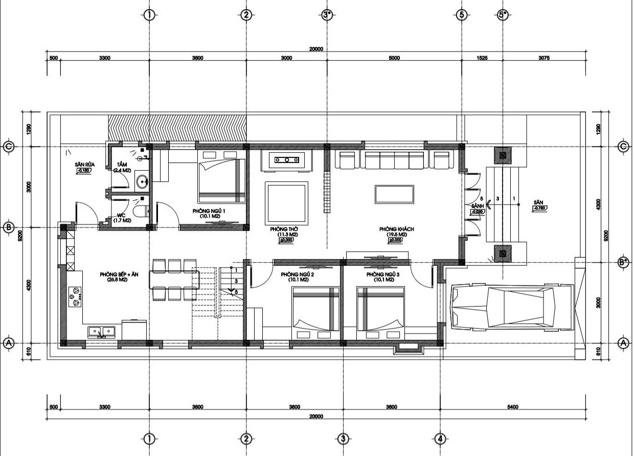 - Công năng dự kiến thi công là 3 phòng ngủ, 1 phòng thờ, 1 phòng khách, 1 phòng bếp.