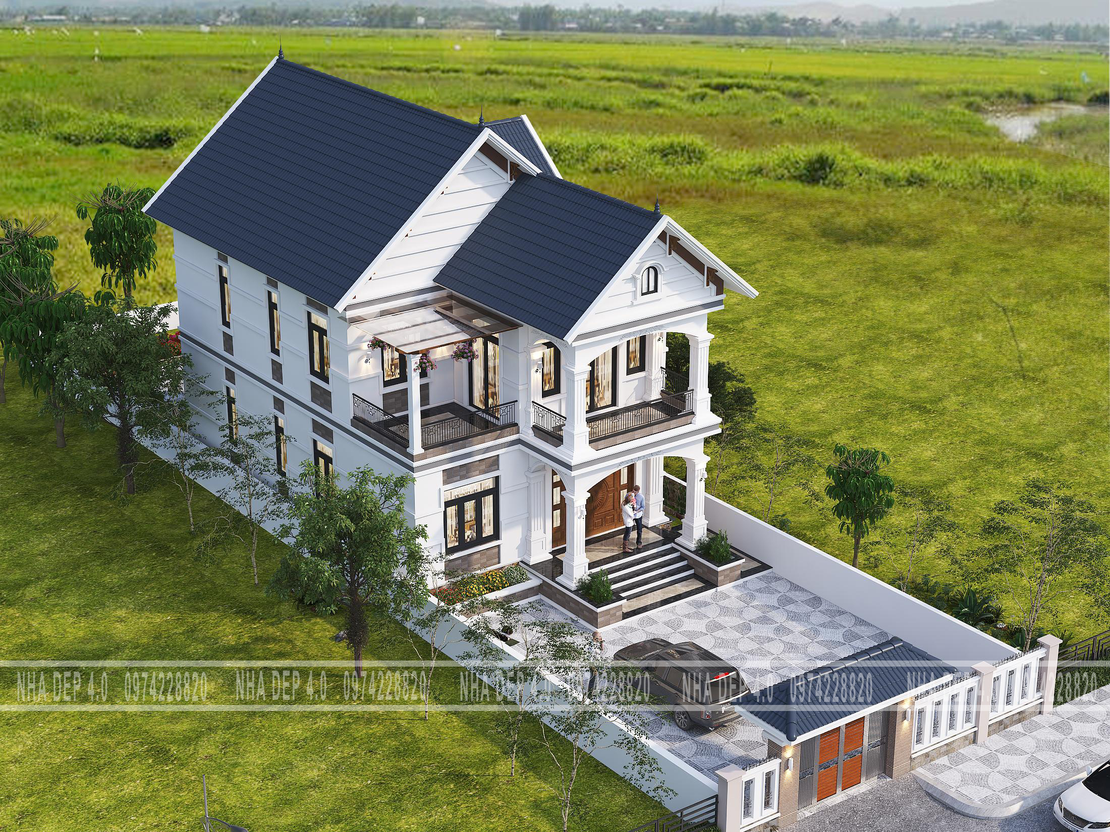 Mẫu biệt thự 2 tầng hiện đại mái Thái diện tích 8m x 13m