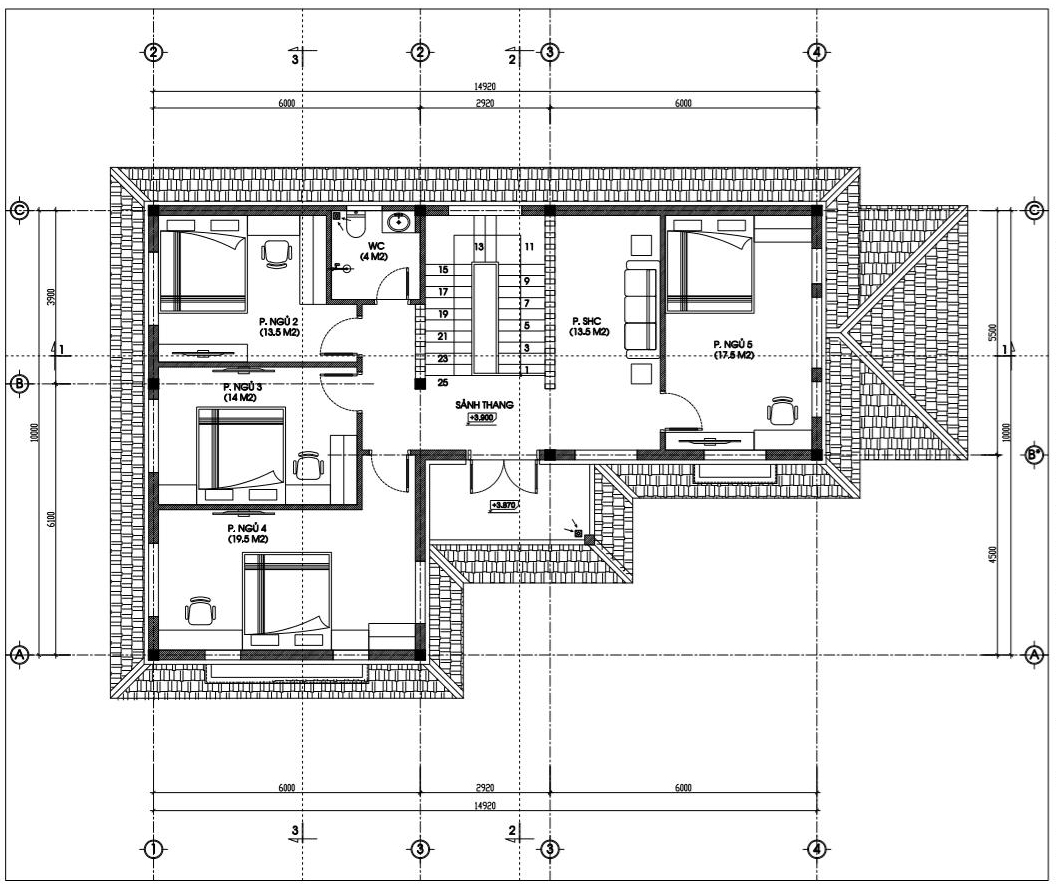 - Công năng dự kiến thi công năng 5 phòng ngủ, 1 phòng khách, 1 phòng bếp