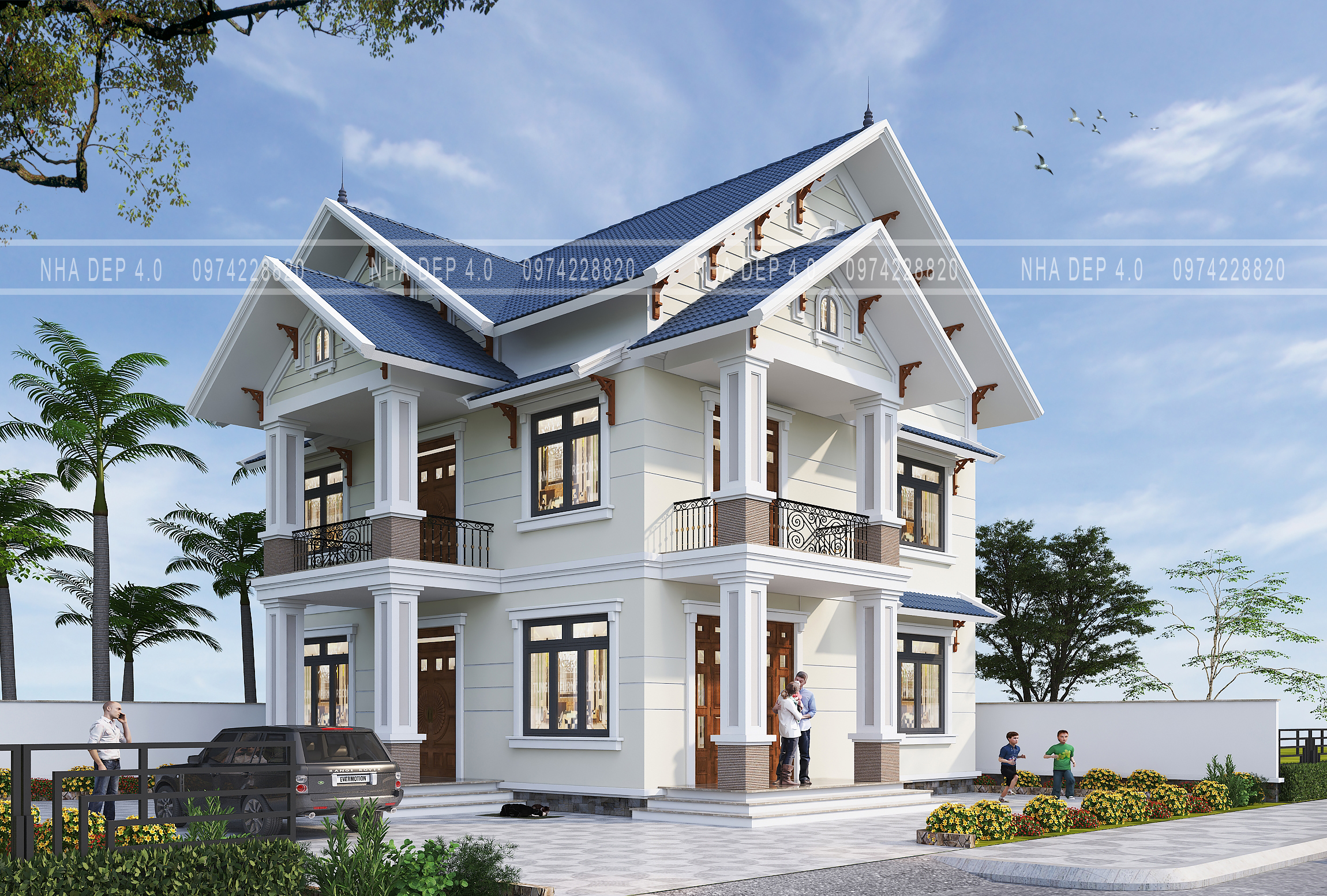 Mẫu biệt thự 2 tầng hiện đại mái Thái diện tích 10,6 x 11,4m
