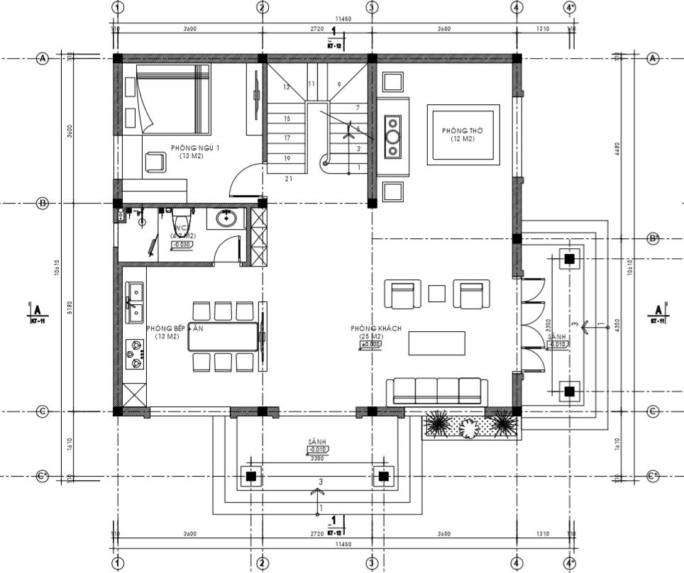 - Công năng dự kiến thi công là 4 phòng ngủ, 1 phòng khách, 1 phòng thờ, 1 phòng bếp.