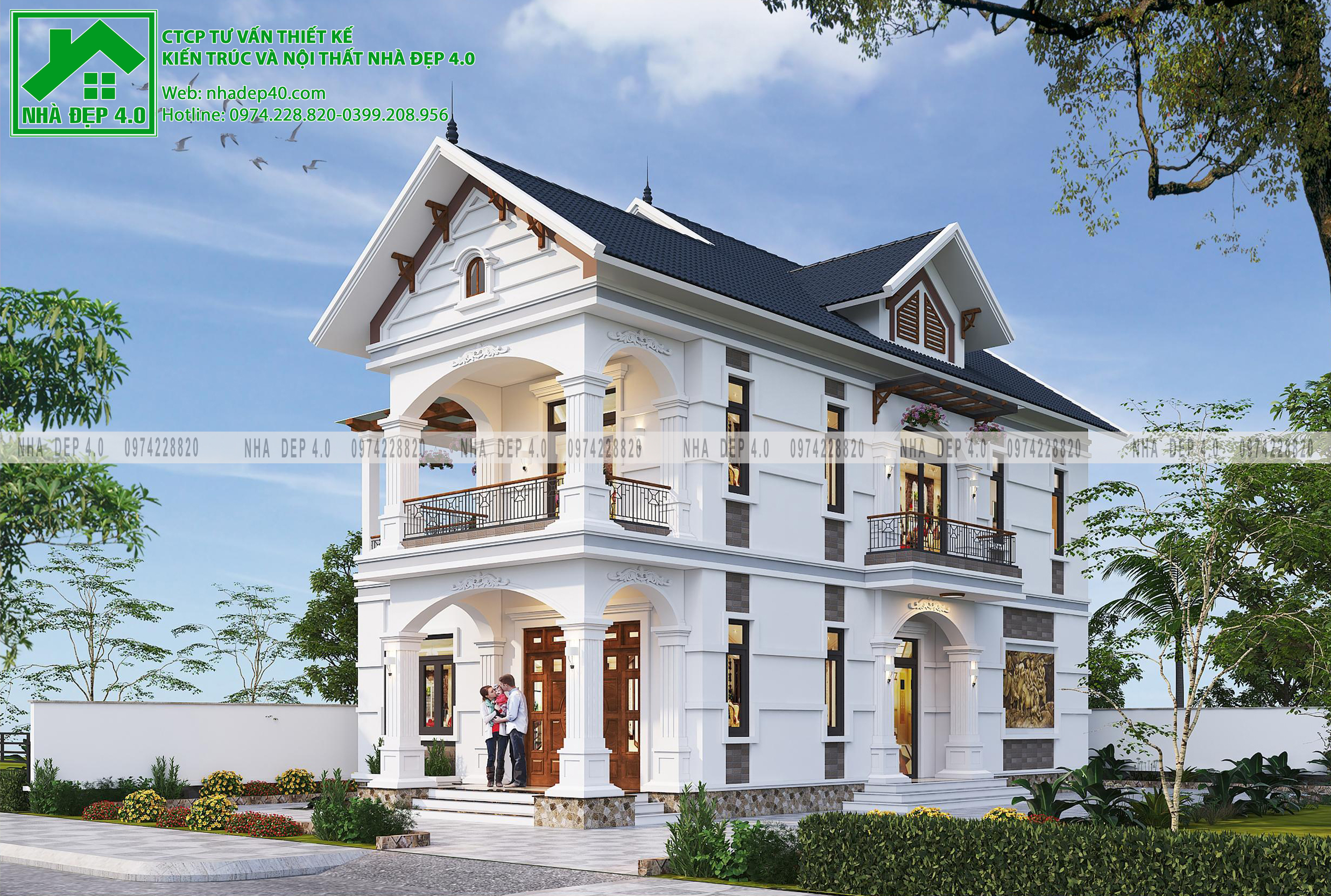 Mẫu biệt thự 2 tầng hiện đại mái Thái diện tích 8m x 13,7m