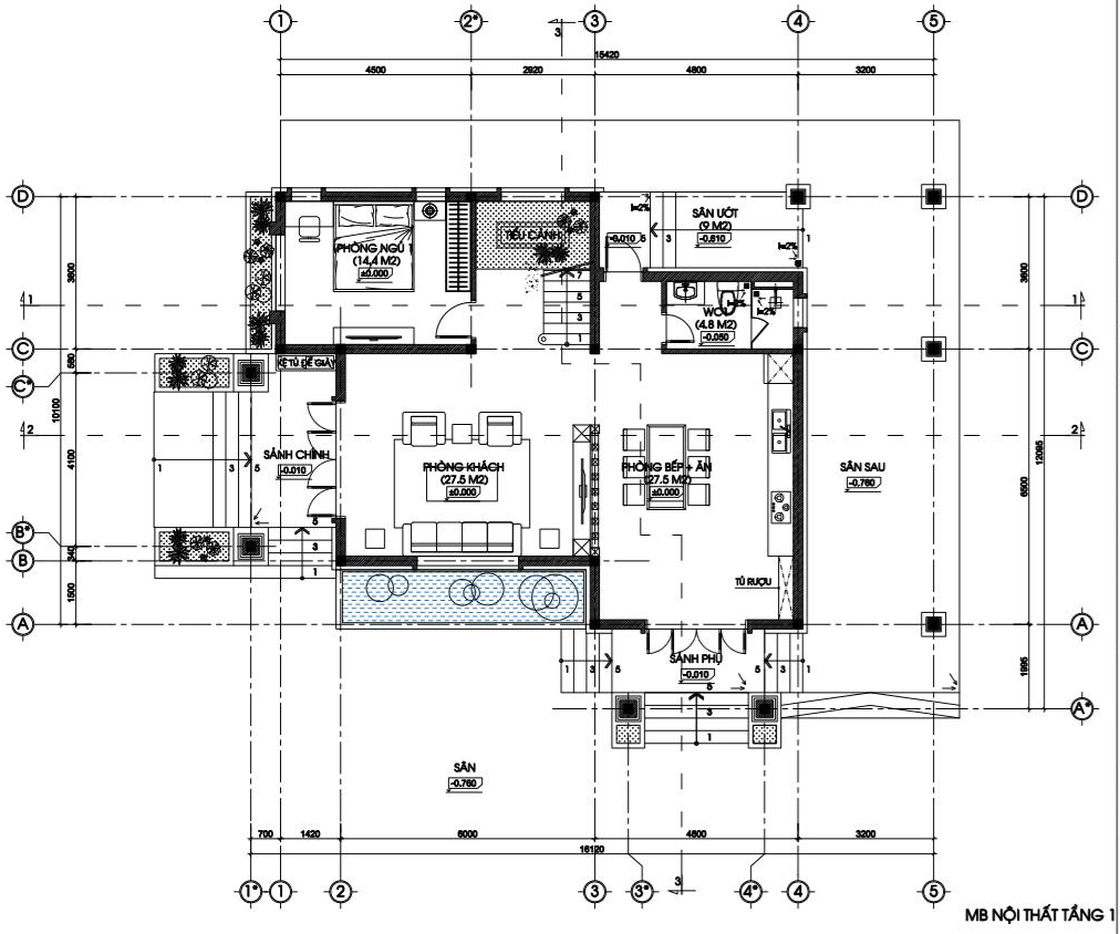 YÊU CẦU THIẾT KẾ CHO BIỆT THỰ 2 TẦNG DIỆN TÍCH 12M X 15,4M