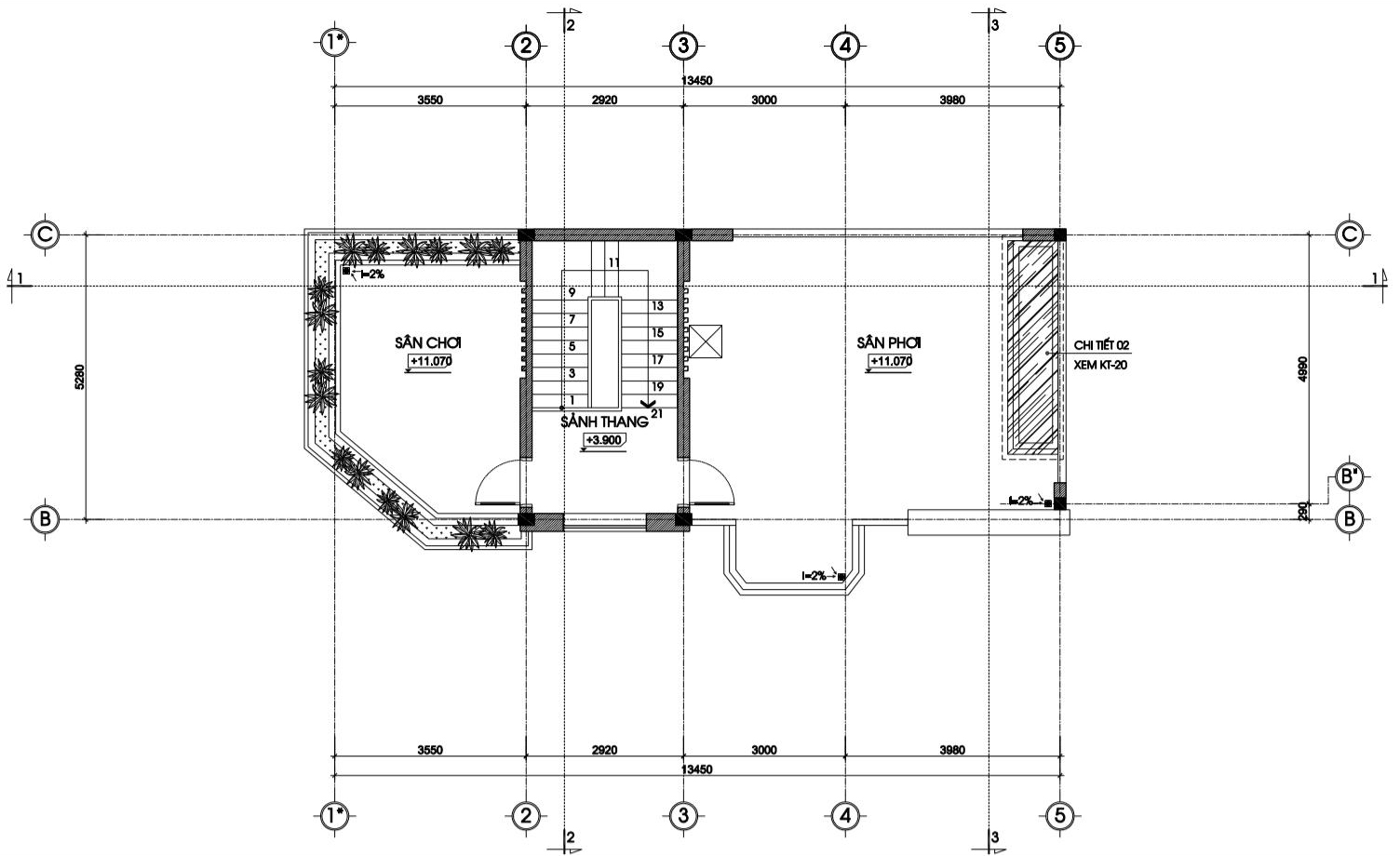 Còn lại tầng tum của công trình là không gian sân chơi và 1 sân phơi.