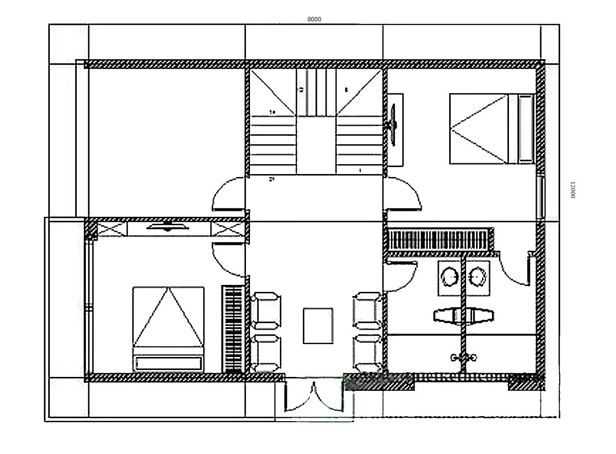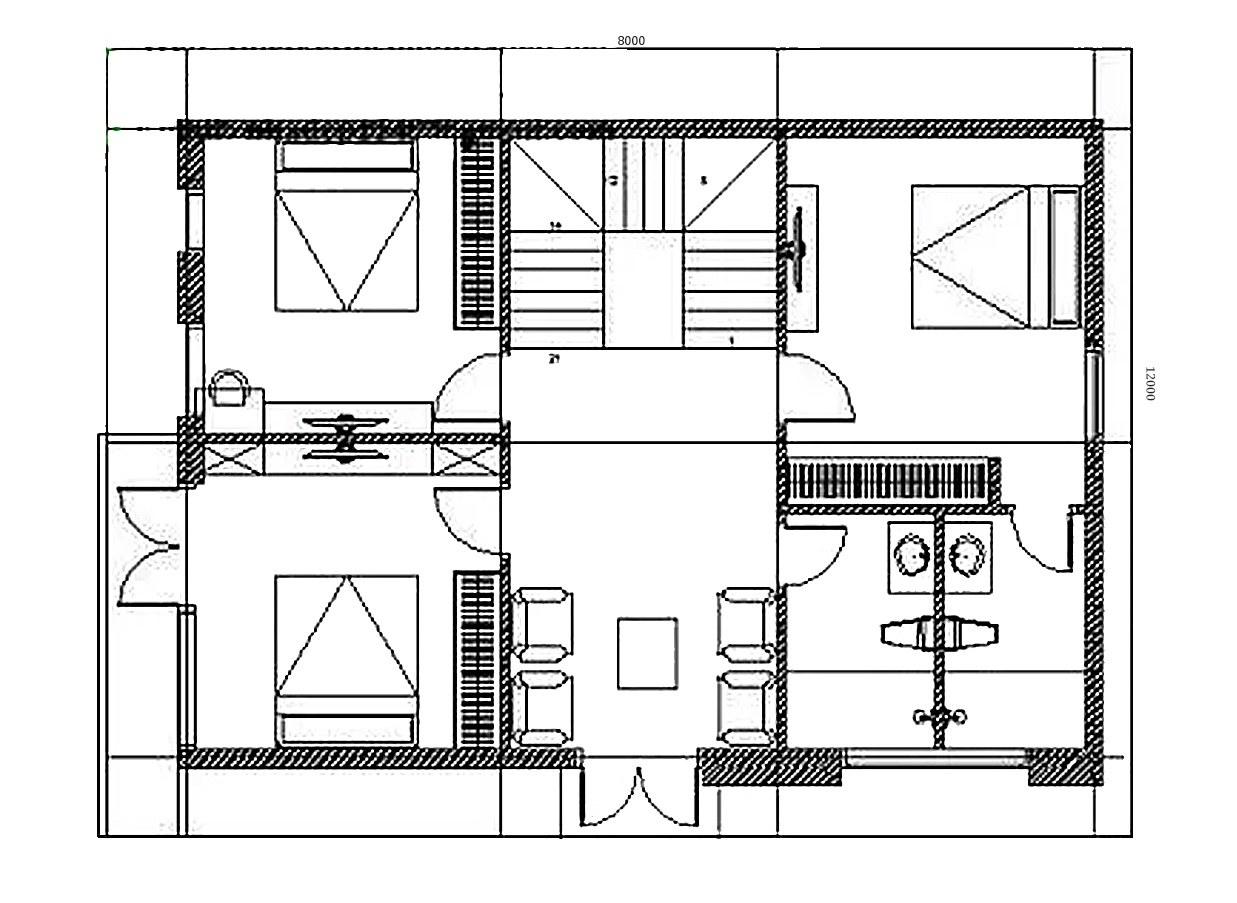 Mặt bằng tầng 2 mẫu biệt thự mini hiện đại 3 tầng