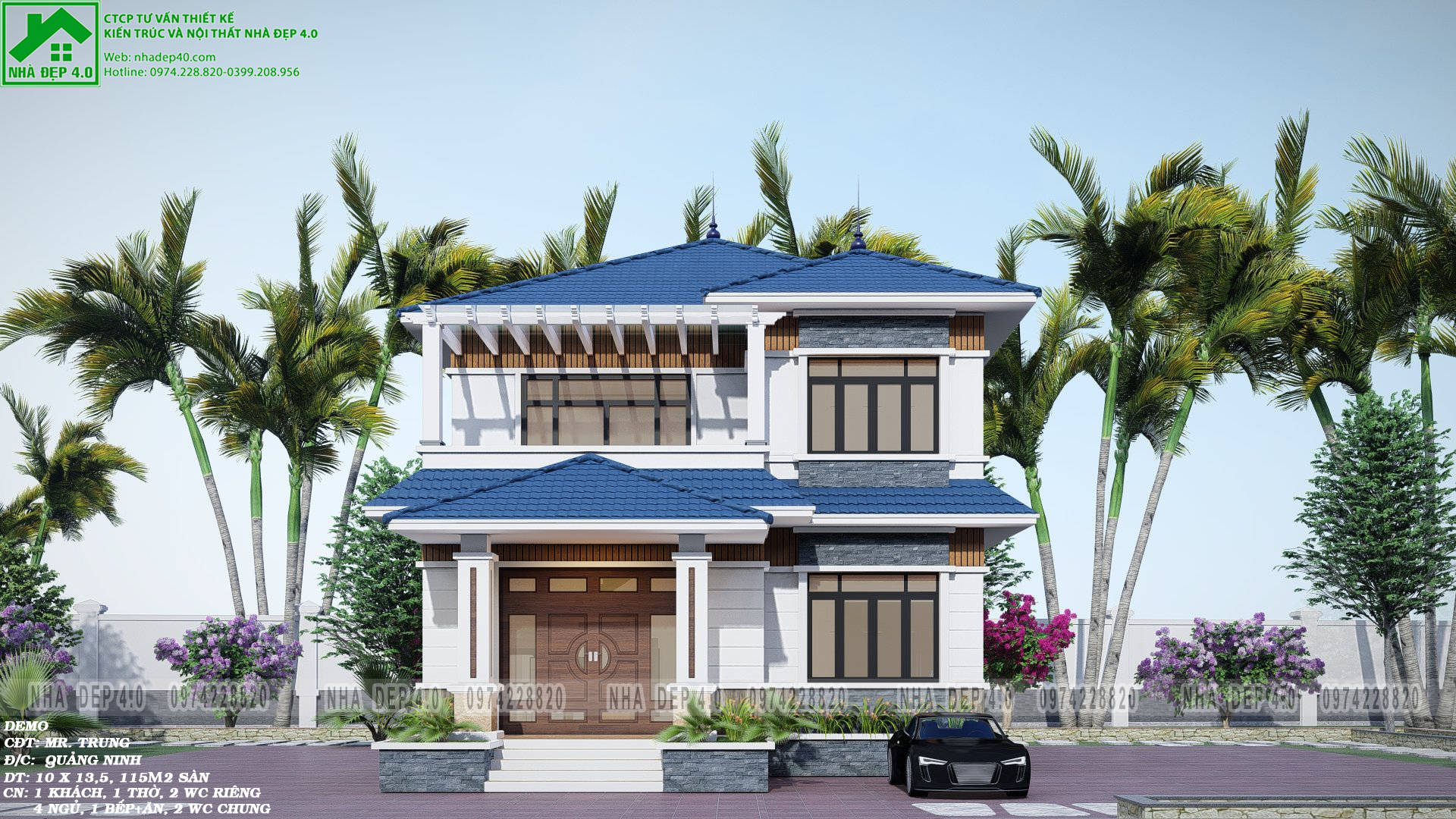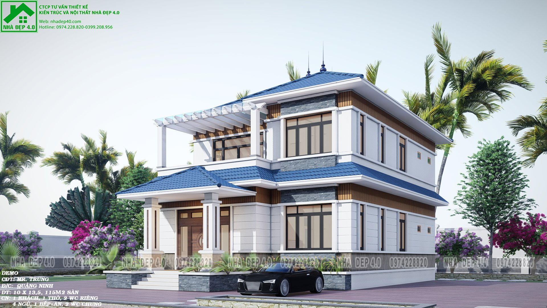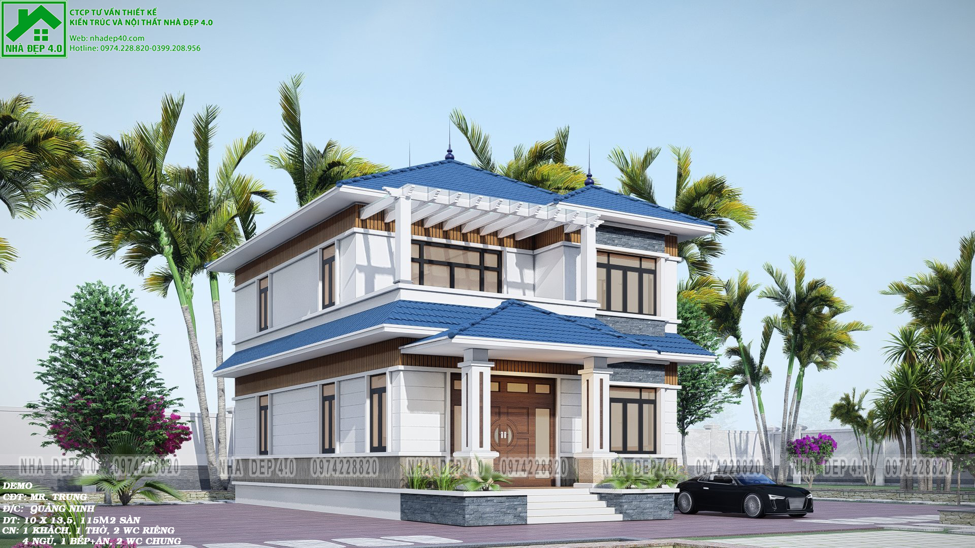 Biệt thự 2 tầng mái nhật là kiểu biệt thự được thiết kế theo phong cách kiến trúc mái nhật với các đường nét tinh tế và bắt mắt. Kiểu mái này mang đậm nét cổ xưa và có sự hài hòa với môi trường sống xung quanh. Biệt thự mái Nhật 2 tầng mang phong cách kiến trúc nhẹ nhàng, khiến người nhìn thấy thoải mái mà không bị rối mắt. Nó như một làn gió mới thổi hồn vào từng không gian sống, khiến gia chủ được tận hưởng cuộc sống an lành và dễ chịu. Hôm nay Nhà Đẹp 4.0 sẽ chia sẻ tới mọi người 1 mẫu biệt thự mái nhật rất được các chủ đầu tư quan tâm trong thời gian gần đây do đội ngũ kts Nhà Đẹp 4.0 đã thiết kế, để mọi người có thể tham khảo và lên ý tưởng cho ngô nhà mơ ước của gia đình mình.
