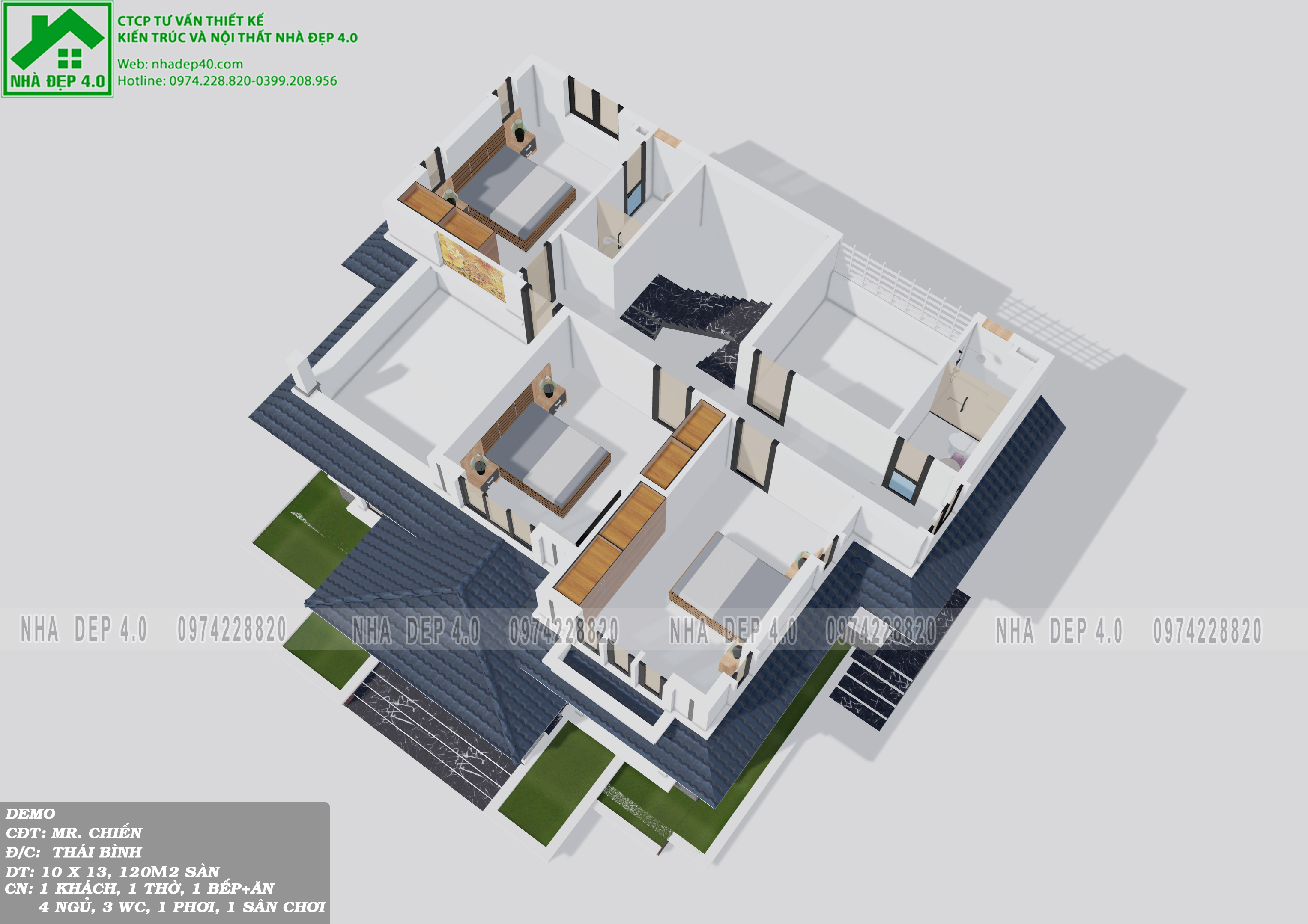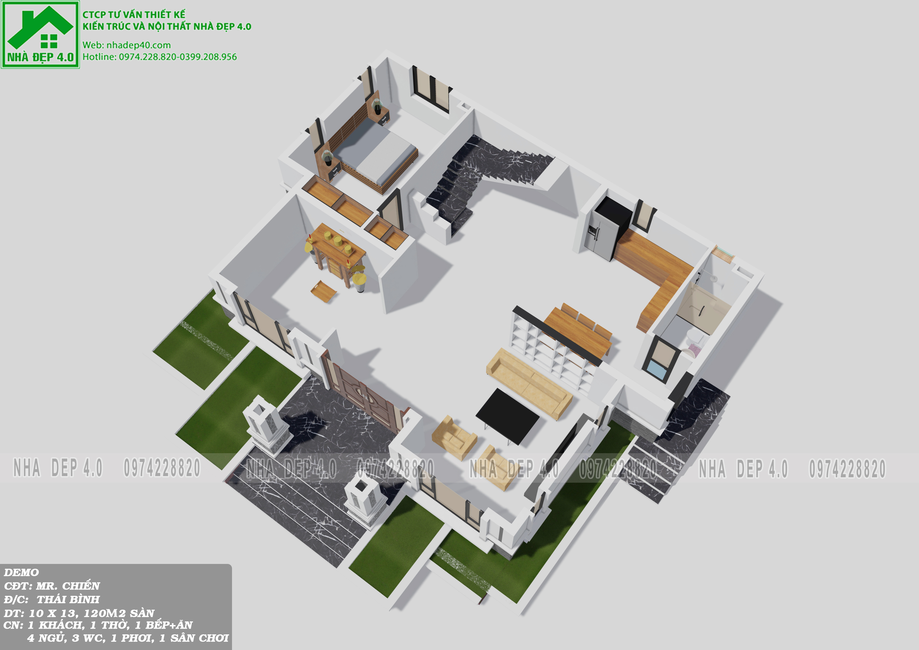 Trên đây là bản thiết kế mẫu biệt thự 2 tầng diện tích 10m x 13m của gia đình nhà anh Chiến tại Thái Bình. Hy vọng trên đây sẽ là gợi ý phù hợp cho các bạn khi đang muốn xây dựng ngôi nhà phong cách và kích thước tương tự. Cảm ơn và chúc các bạn thành công!