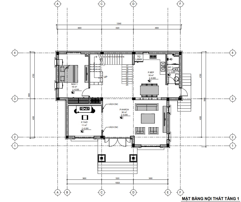 - Công năng: 4 phòng ngủ, 1 phòng khách, 1 phòng thờ, 1 phòng bếp.
