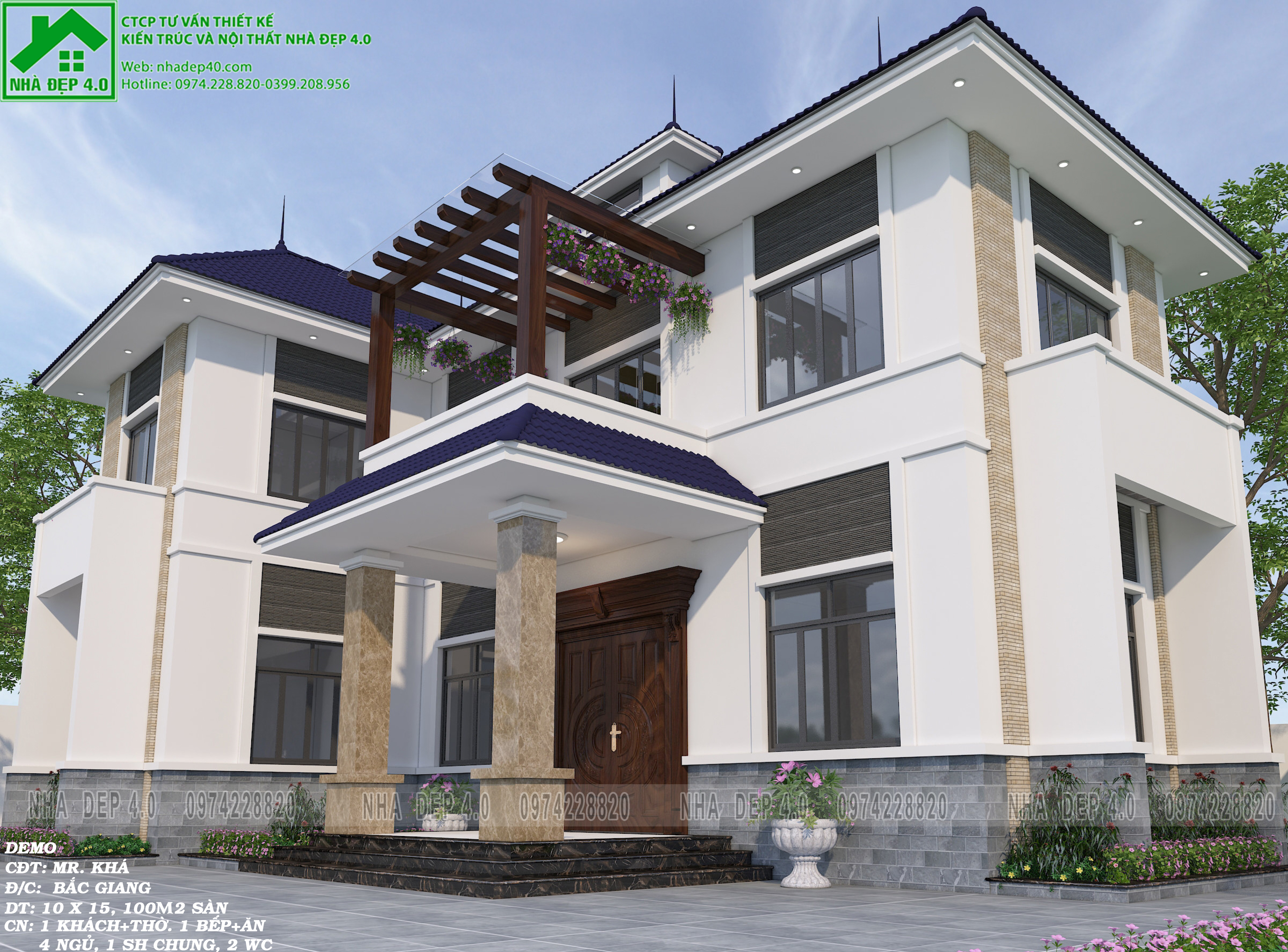 Trên đây là bộ hồ sơ thiết kế nhà biệt thự 2 tầng mái nhật 10,8x15,7m của gia đình anh Khá tại Bắc Giang. Ngôi nhà được thiết kế theo phong cách hiện đại, không gian tiện nghi đẳng cấp mà ai nhìn cũng phải mê mẩn. Mọi yêu cầu tư vấn thiết kế nhà ở bạn hãy liên hệ với kiến trúc sư của công ty Nhà Đẹp 4.0 chúng tôi qua hotline 0974.228.820 để được tư vấn miễn phí.
