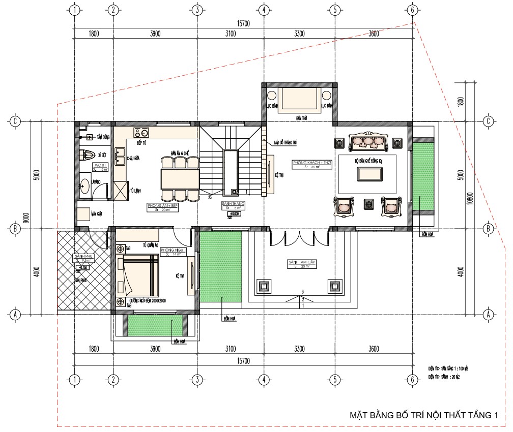 MẶT BẰNG CÔNG NĂNG BIỆT THỰ MÁI NHẬT 10,8M X 15,7M