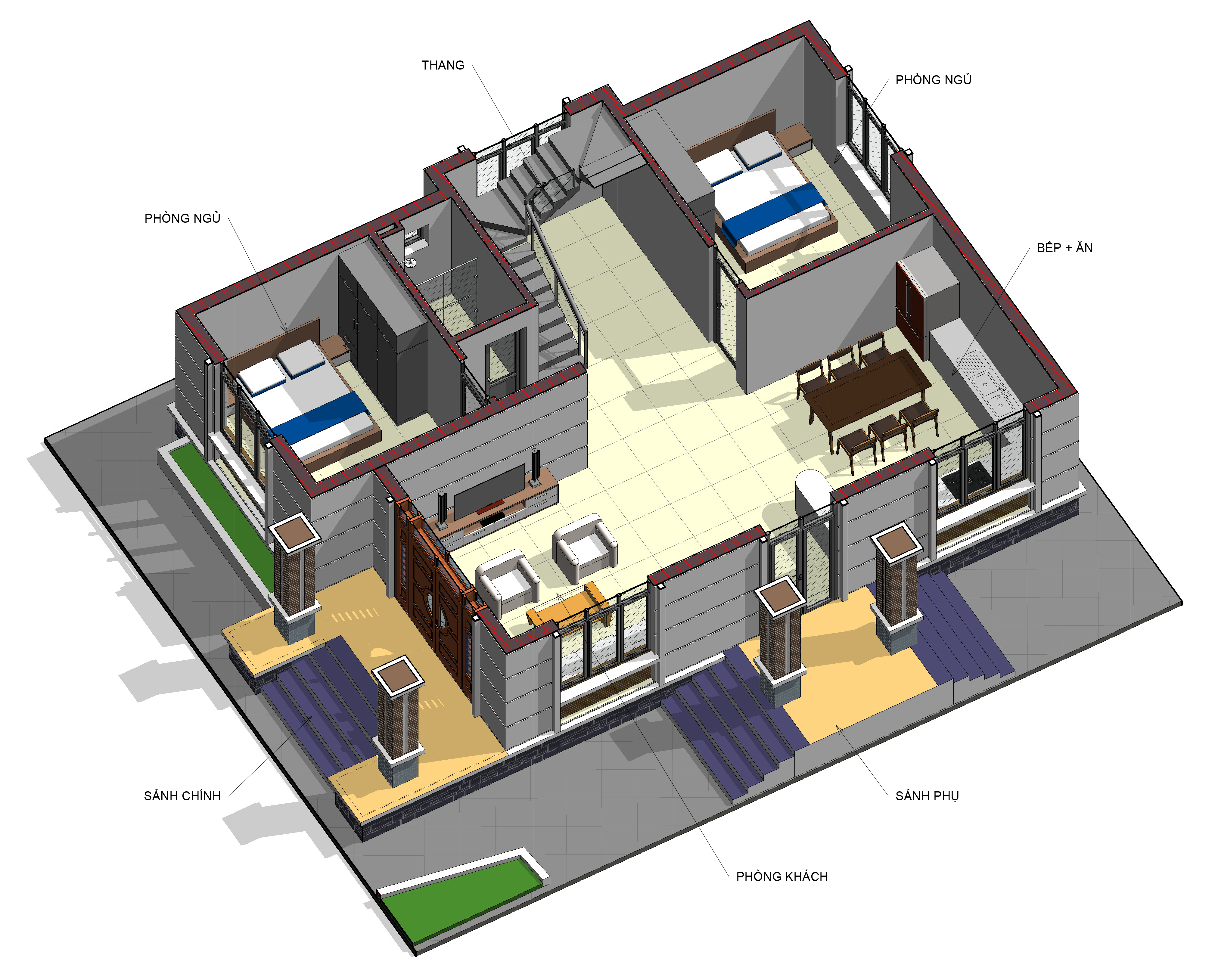 - Công năng: 5 phòng ngủ, 1 phòng khách, 1 phòng thờ, 1 phòng bếp, 1 phòng shc.