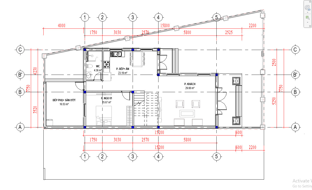 MẶT BẰNG CÔNG NĂNG NHÀ 2 TẦNG DIỆN TÍCH 7,7M X 15M