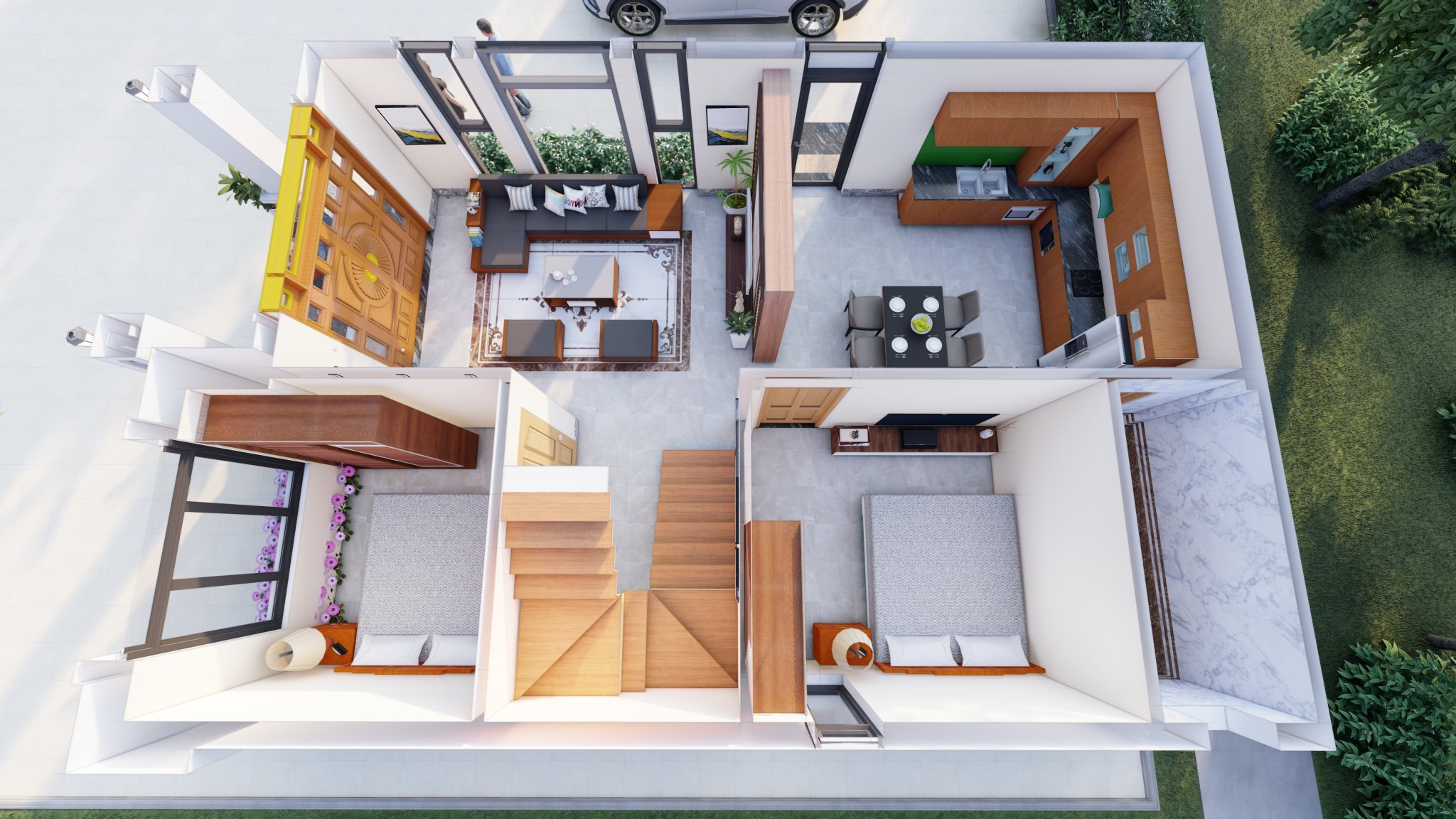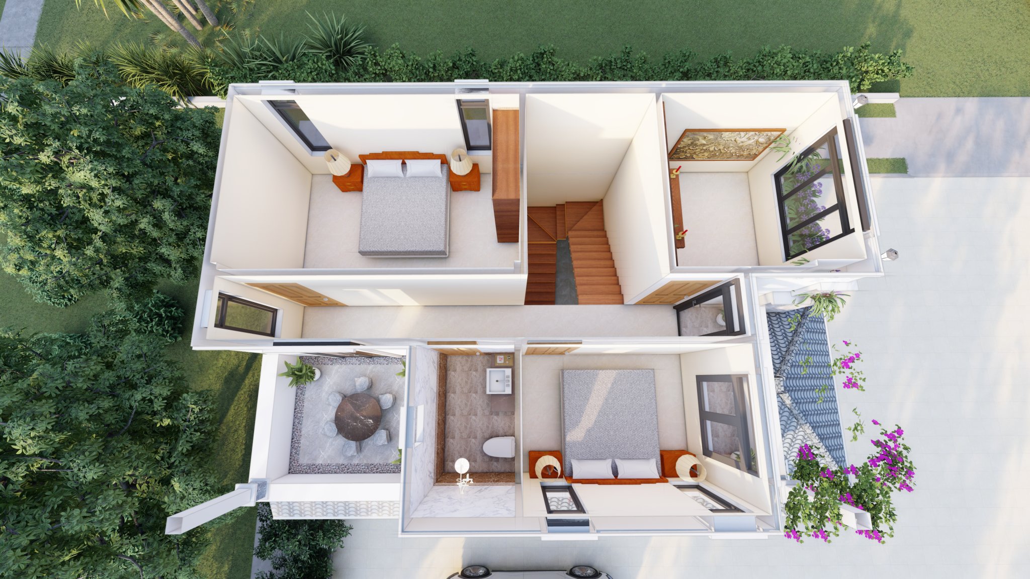 Phối cảnh 3D mẫu nhà mái Nhật 2 tầng