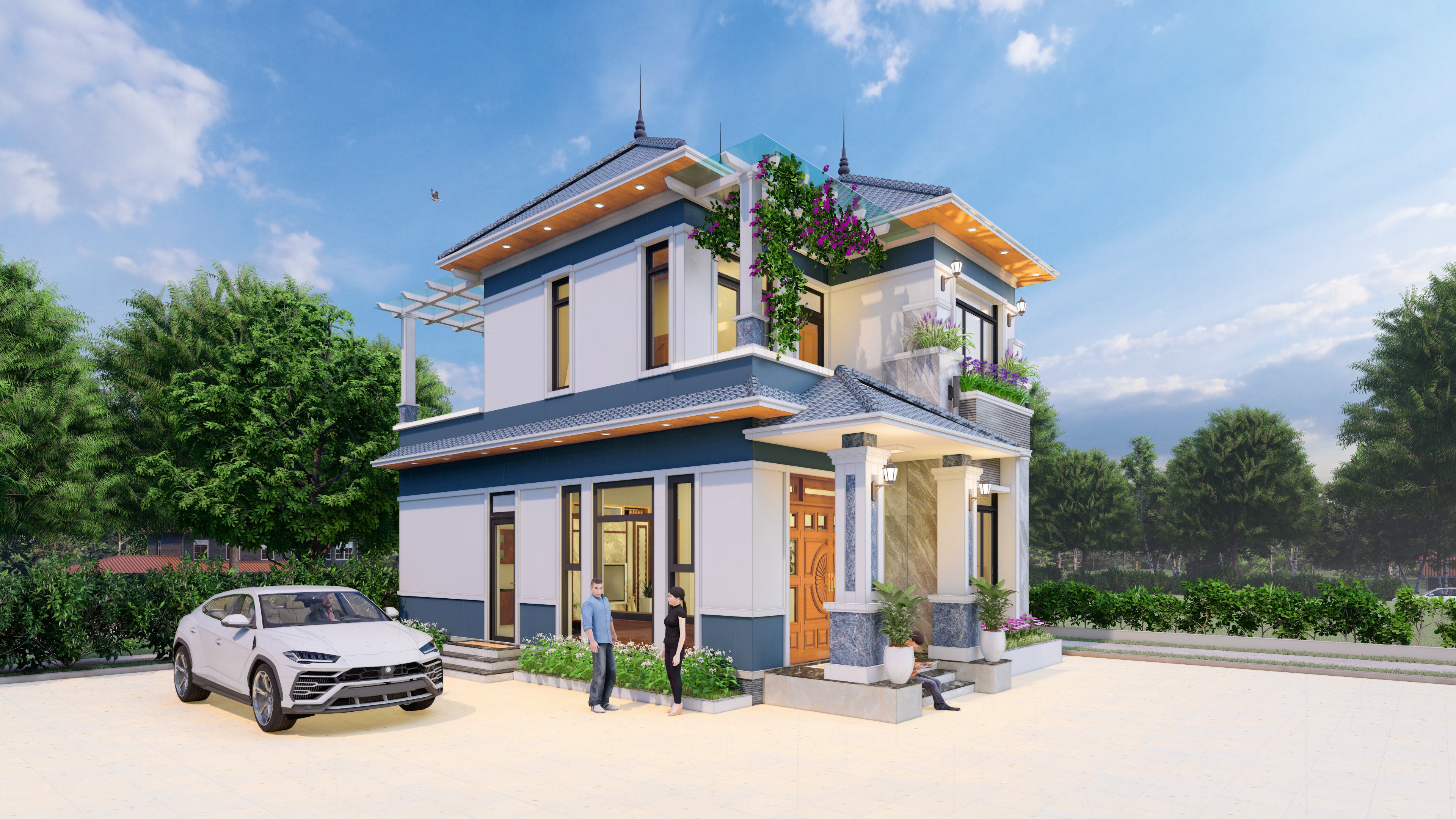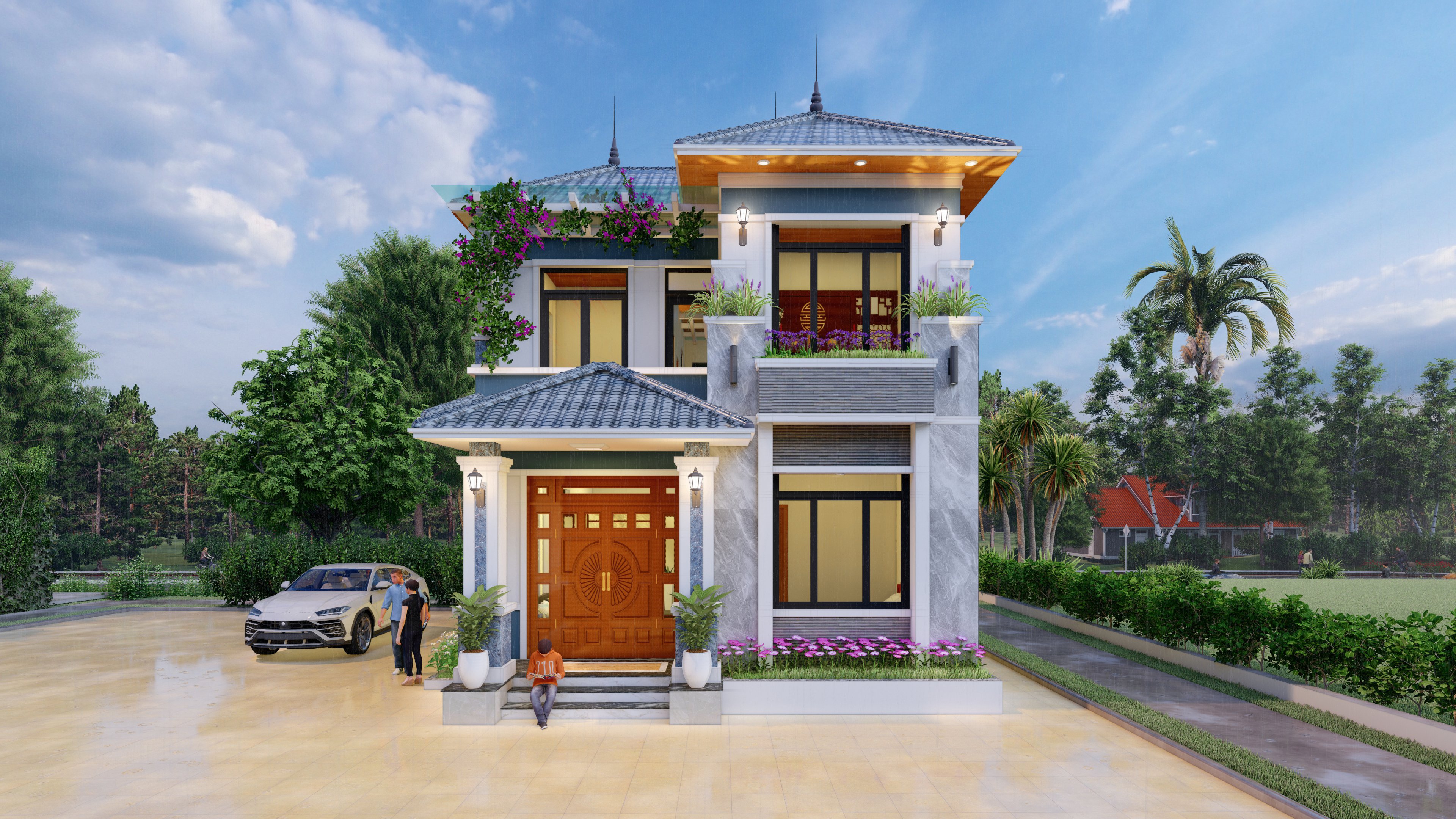 Phối cảnh 3D biệt thự mái Nhật 2 tầng