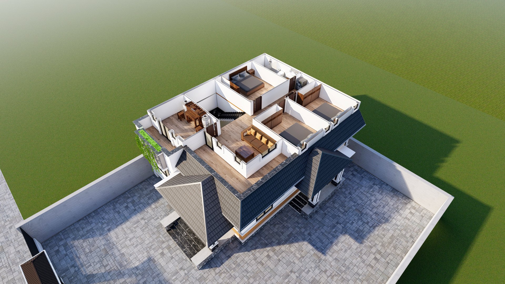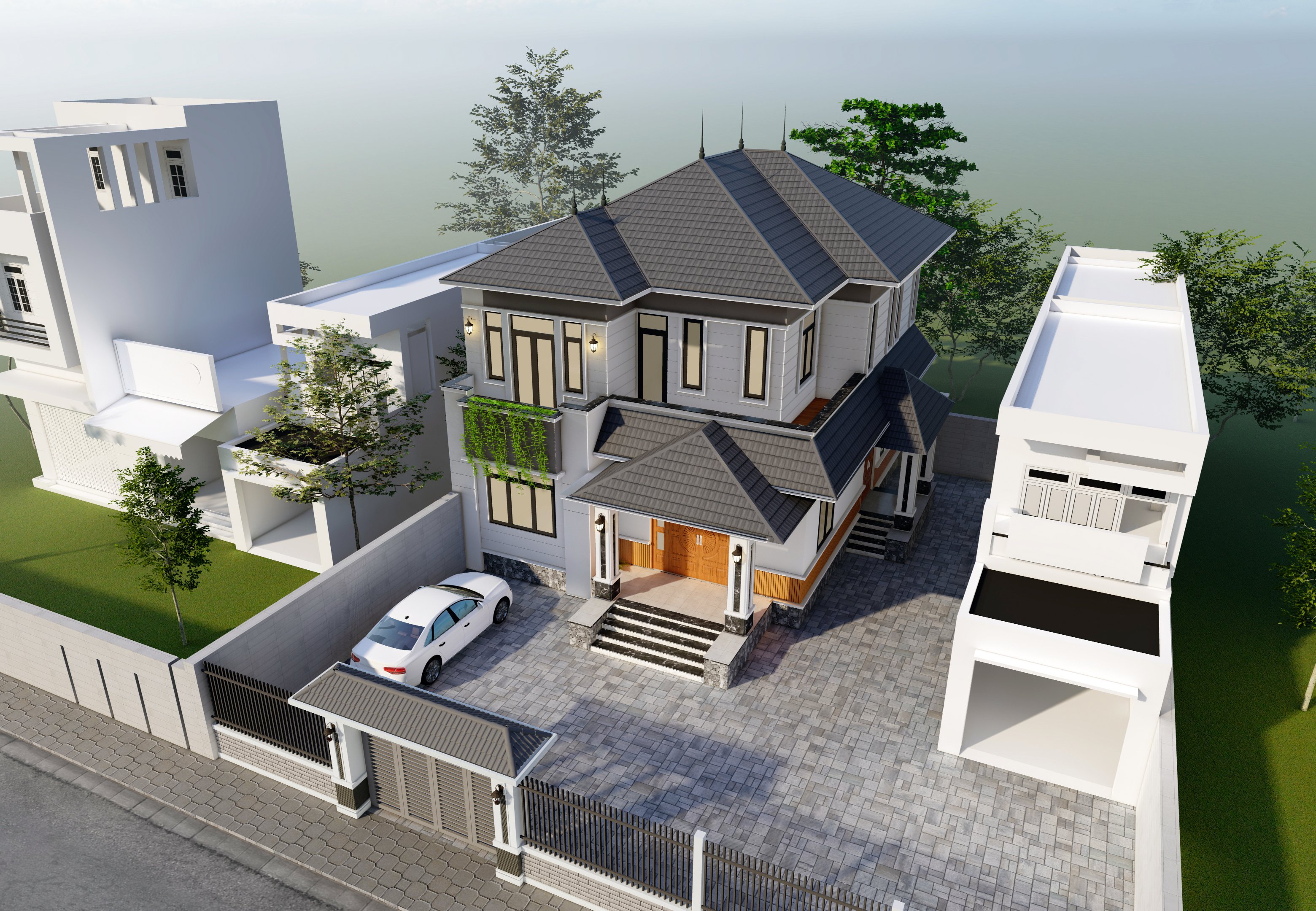 Phối cảnh 3D mẫu biệt thự hiện đại 2 tầng