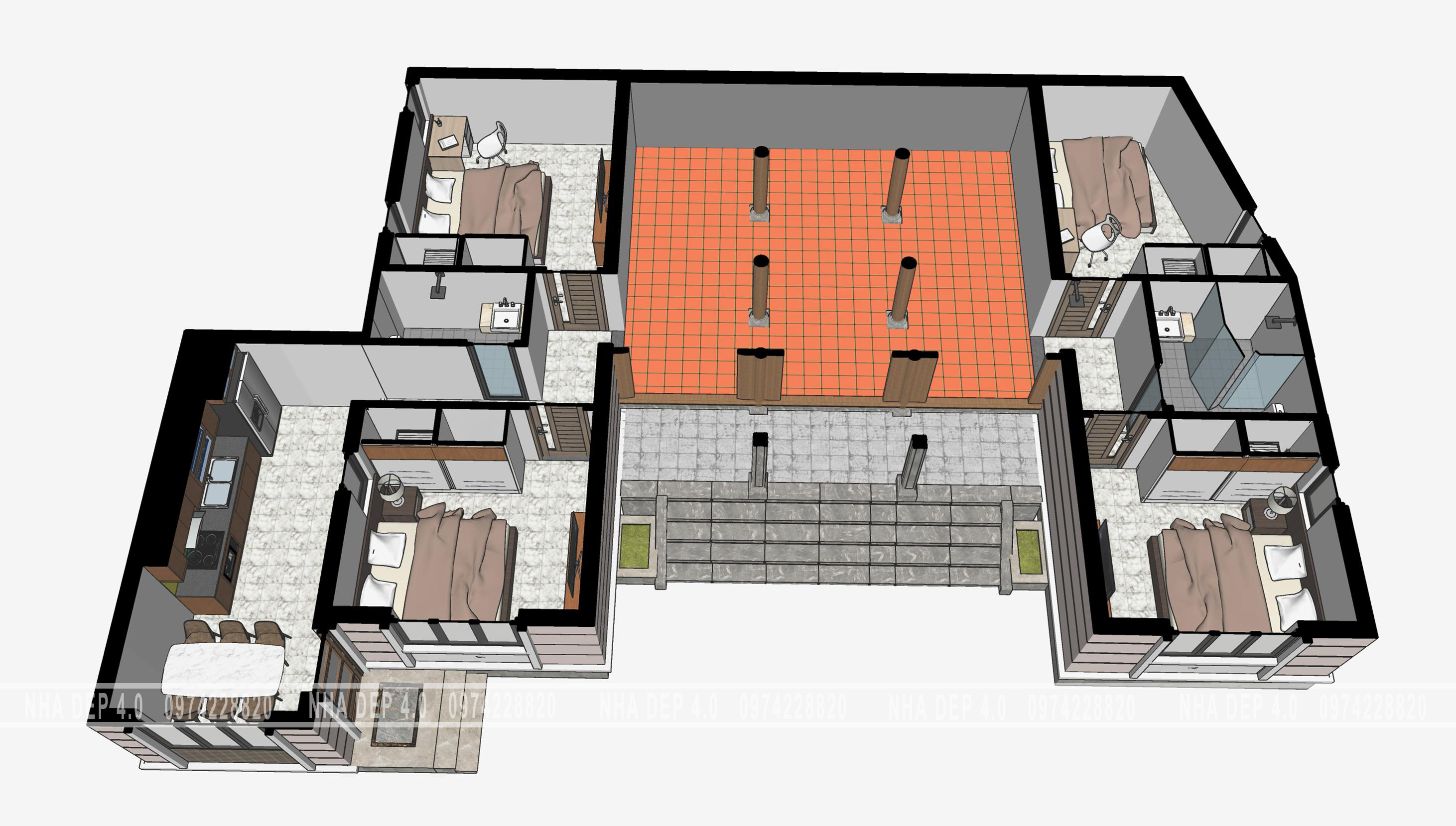 Công năng: 4 phòng ngủ, 1 phòng bếp, giữ nguyên nhà 3 gian.