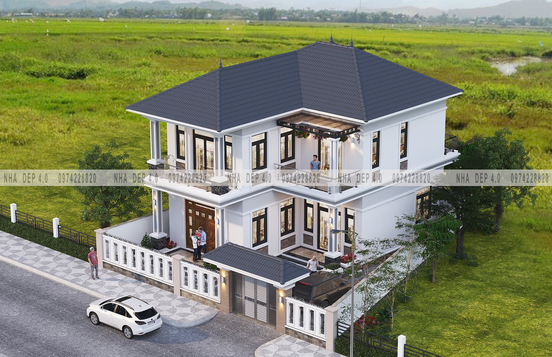 Mẫu biệt thự 2 tầng hiện đại với phối cảnh kiến trúc ấn tượng và có nhiều sáng tạo, được kiến trúc sư của Nhà Đẹp 4.0 triển khai thiết kế cho gia đình bác Bảy tại Phú Thọ. Hy vọng mẫu thiết kế nhà của chúng tôi sẽ giúp các bạn có thêm những ý tưởng thiết kế biệt thự nhà vườn mới mẻ và khoa học hơn nhé.