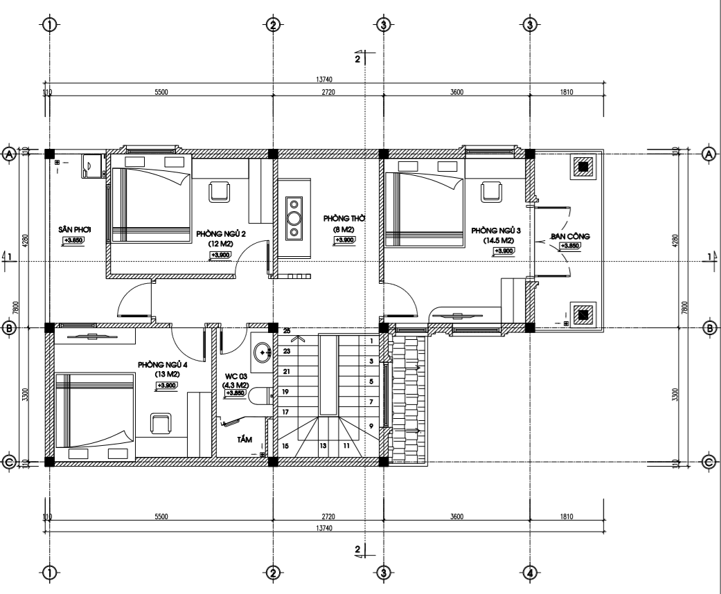 - Công năng dự kiến thi công là 4 phòng ngủ, 1 phòng khách, 1 phòng thờ, 1 phòng bếp.