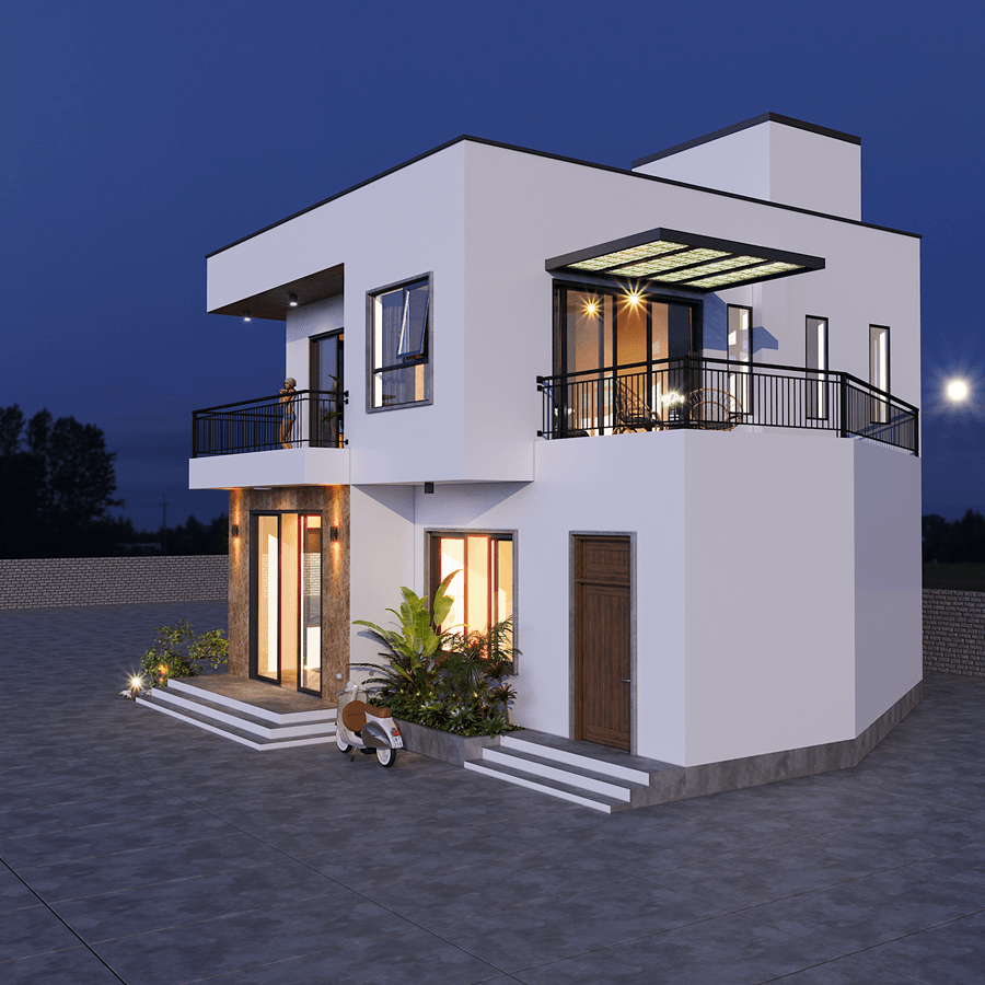Phối cảnh tổng quát mẫu biệt thự 2 tầng hiện đại và khoa học
