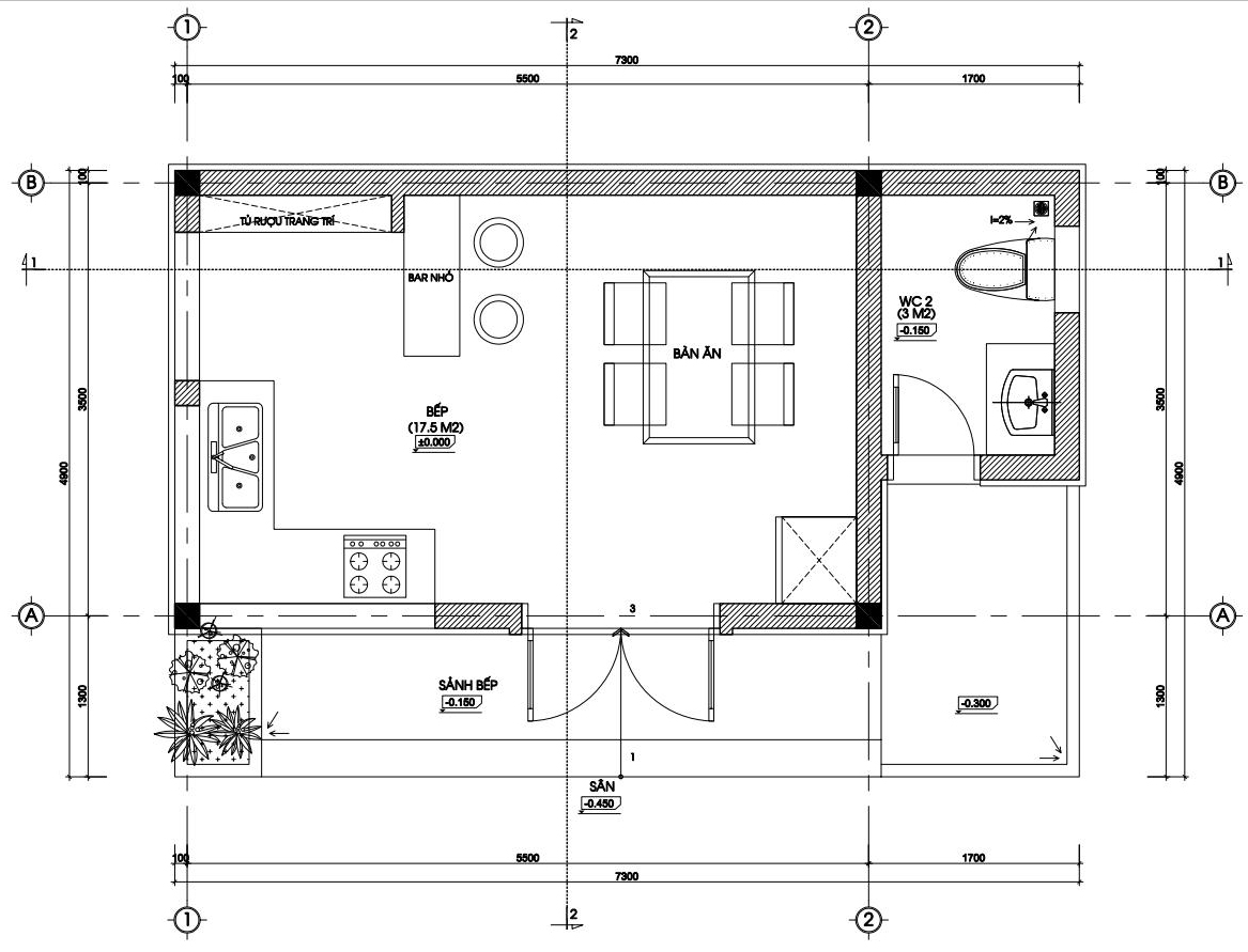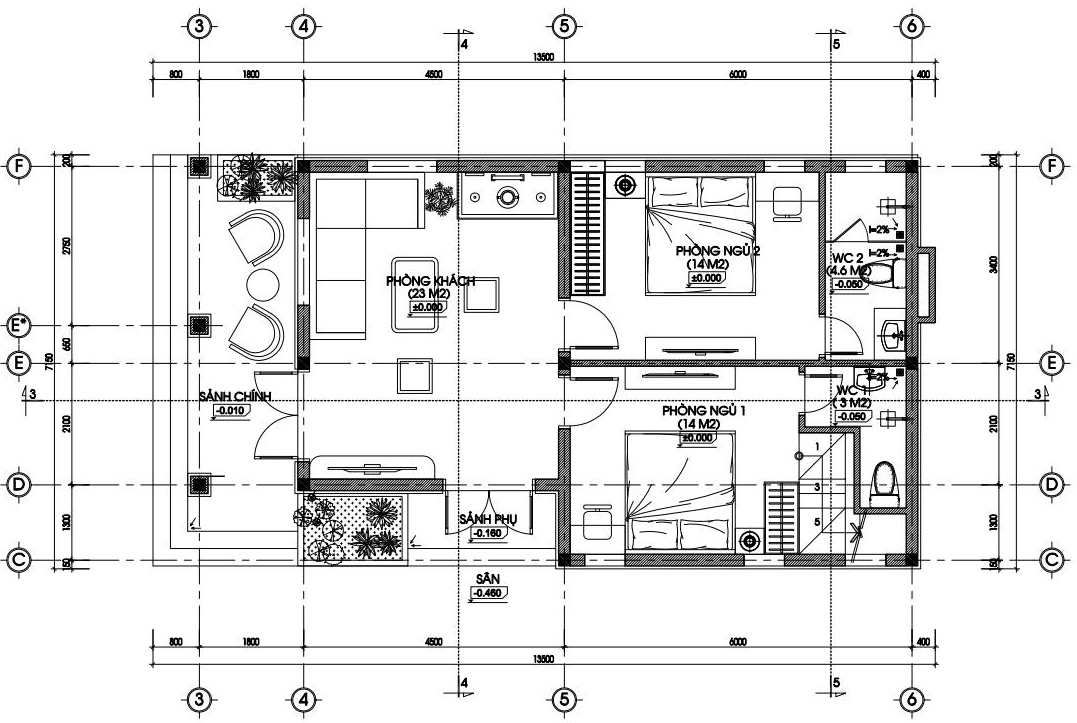 - Công năng dự kiến thi công là 2 phòng ngủ, 1 phòng khách, 1 phòng thờ, 1 phòng bếp riêng biệt các không gian.