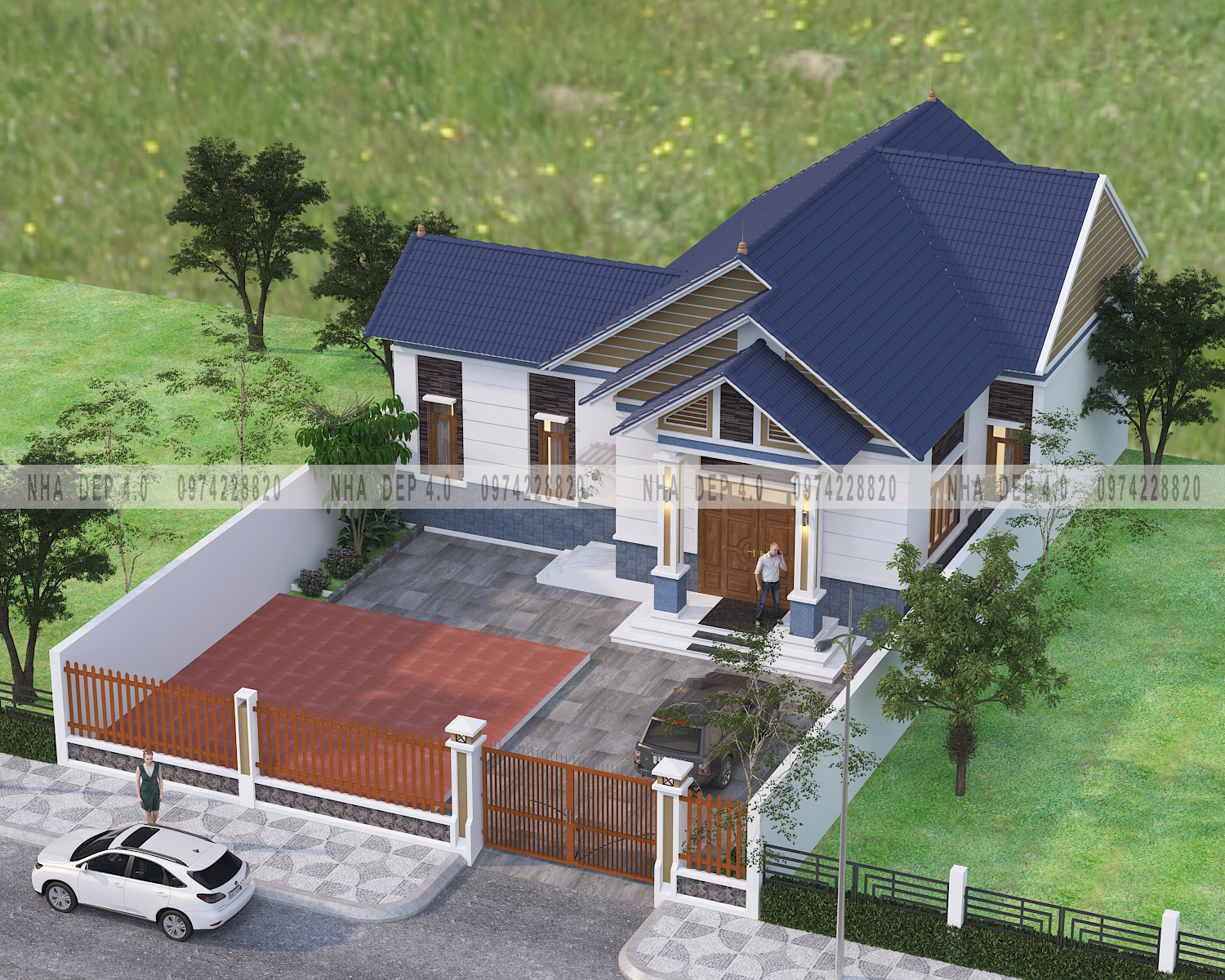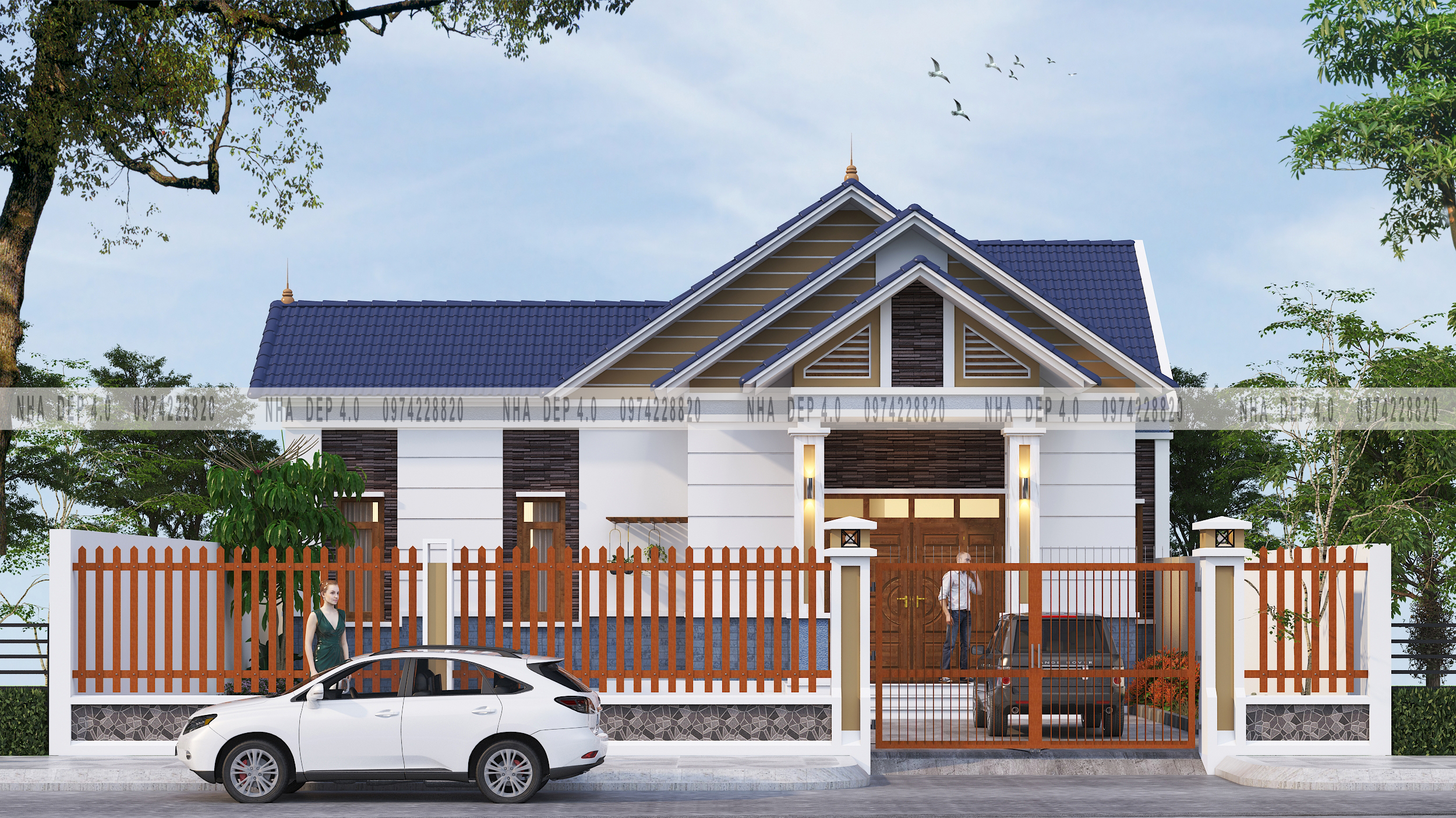 Mẫu biệt thự 1 tầng hiện đại với phối cảnh kiến trúc ấn tượng và công năng khoa học, có tổng mức kinh phí đầu tư chưa đến 800 triệu được Nhà Đẹp 4.0 thiết kế cho gia đình nhà anh Vỹ tại Hưng Yên. Hi vọng sẽ giúp các bạn hoàn thiện ý tưởng thiết kế mẫu biệt thự vườn 1 tầng cho gia đình mình nhé.