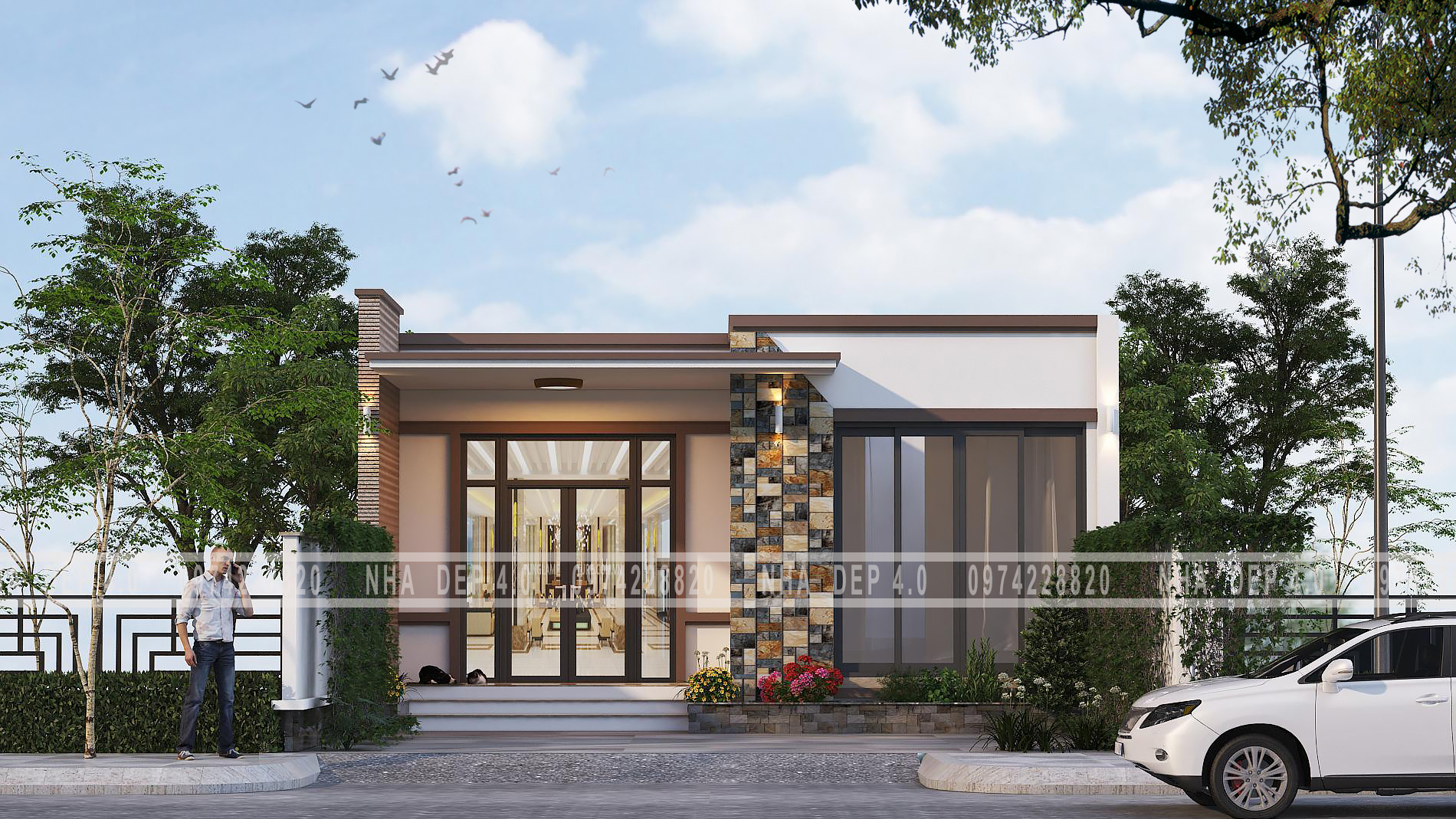 Phối cảnh 3d mẫu nhà phố hiện đại diện tích 8x11,5m