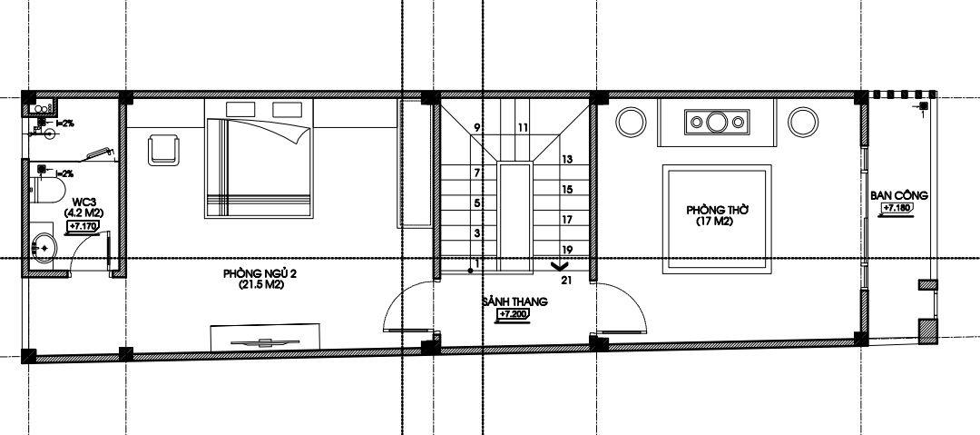 MẶT BẰNG CÔNG NĂNG NHÀ PHỐ DIỆN TÍCH 4,2M X 14M